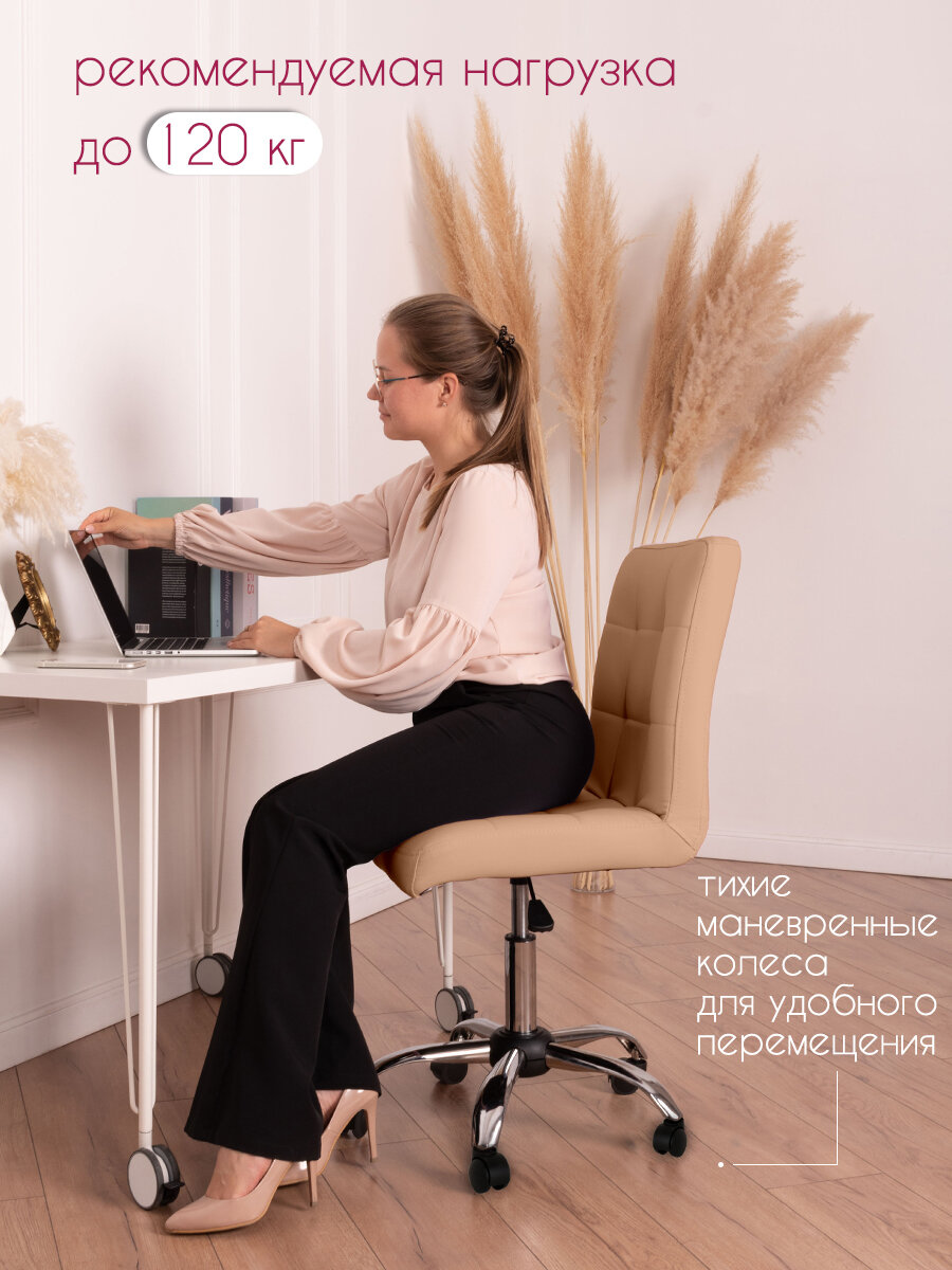 10 цен на Стул мастера и клиента со спинкой и регулировкой высоты Cosmotec Ирис, на колесиках, пудра