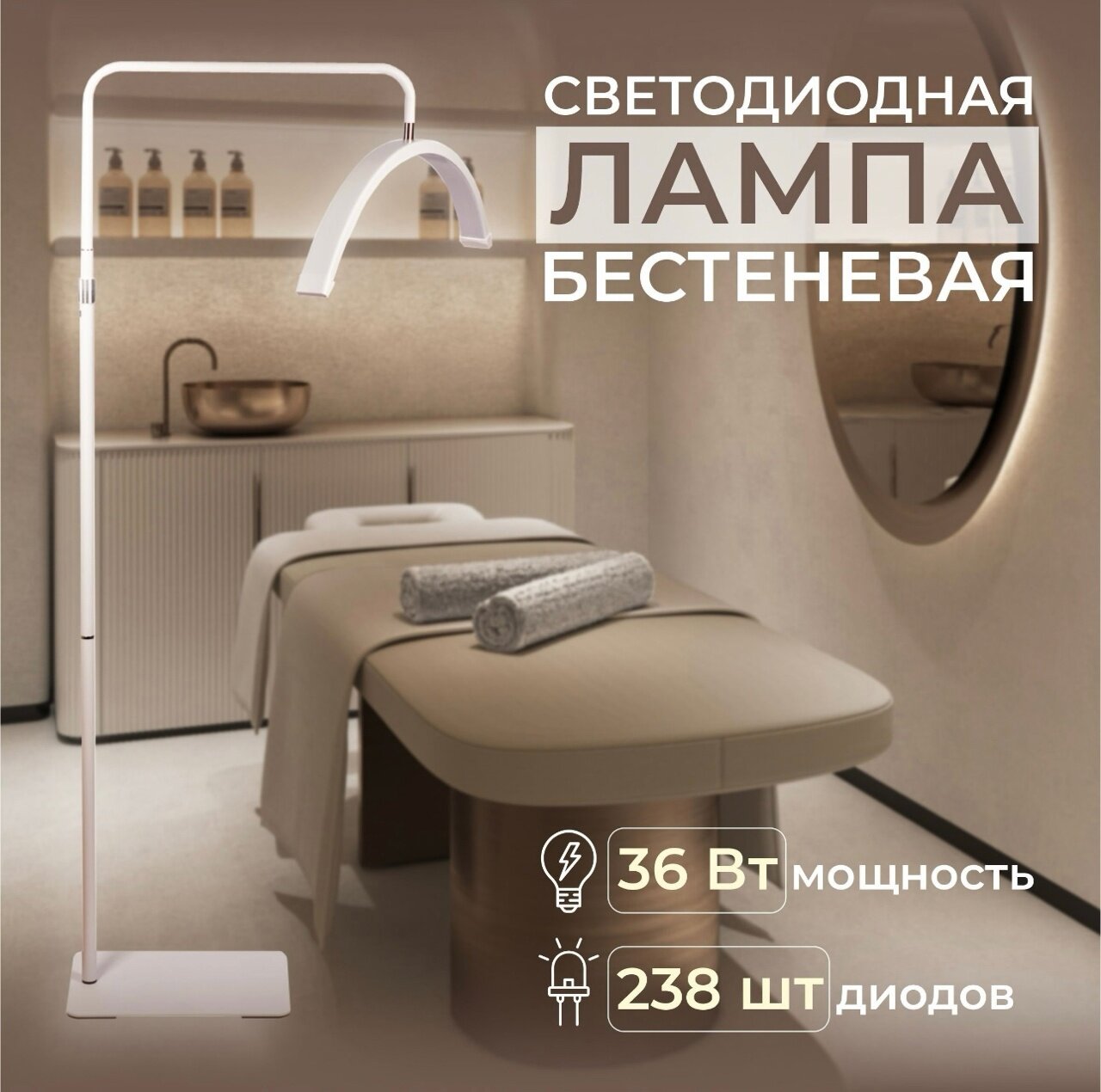 "Бестеневая Лампа Луна Дуга" - Напольная Со Штативом, 36W, белая. информация: