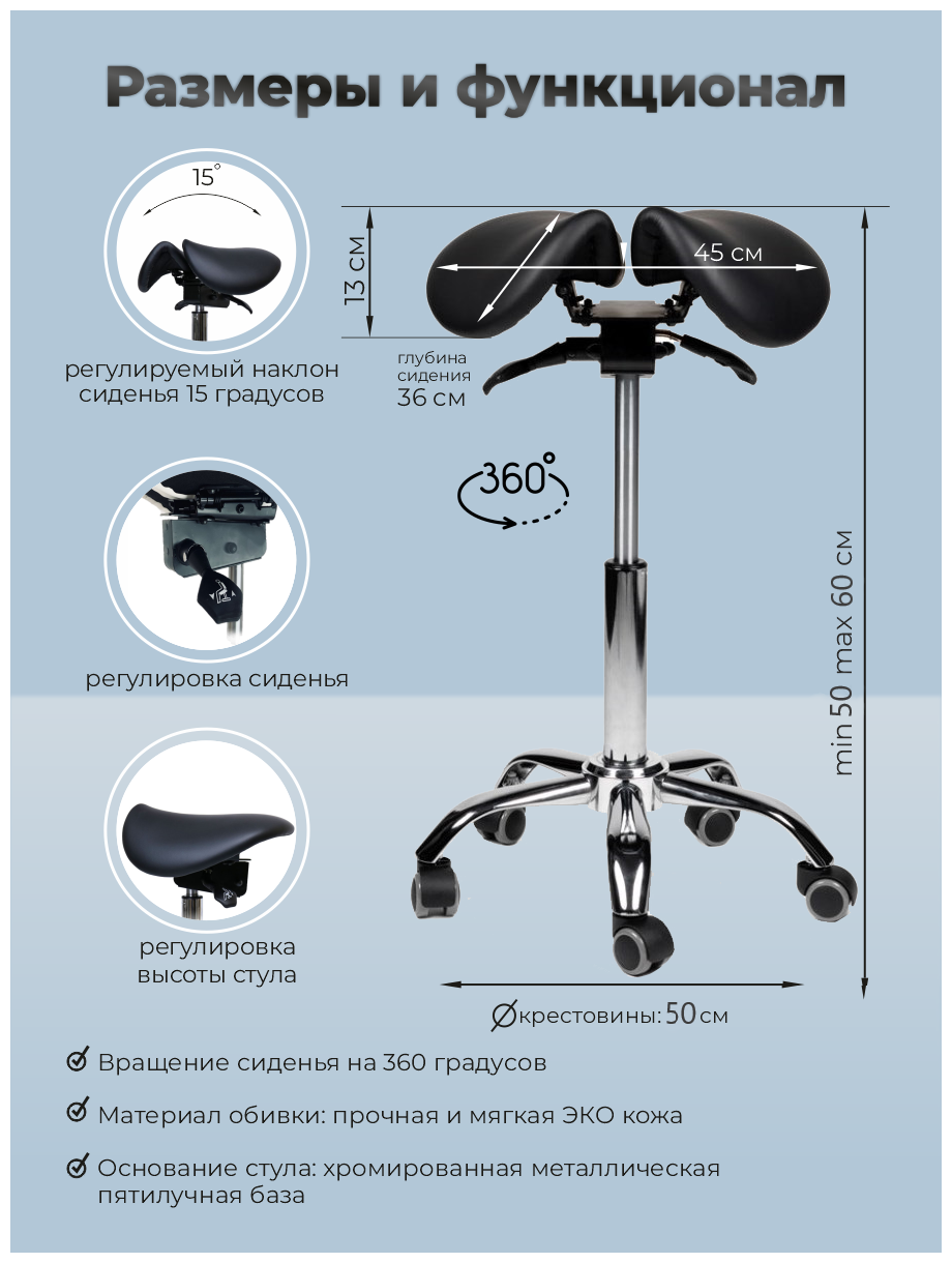 Отзывы на OKIRO Стул-седло для мастера на колесах с регулировкой наклона HY 4008 BL/ стул для парикмахера, визажиста