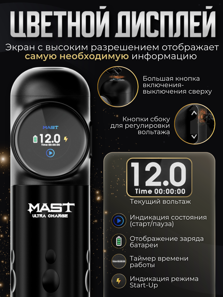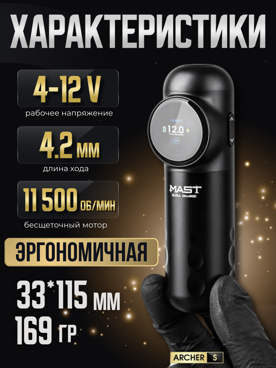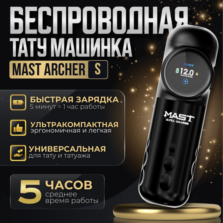 Беспроводная машинка для тату и татуажа MAST Archer S (matte black) информация: