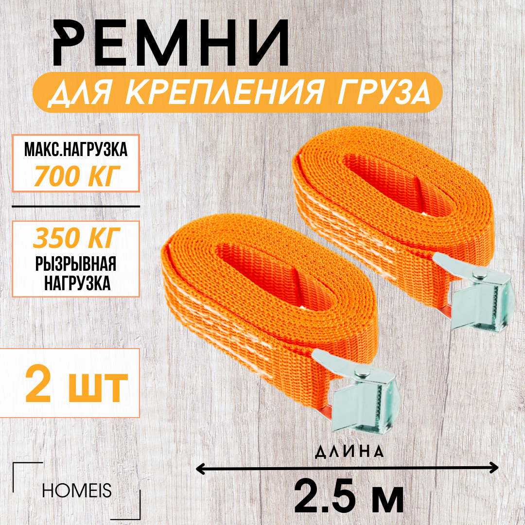 Отзывы на Набор крепежных ремней 2,5 м, ширина-25мм, 350 кг, 2 шт / механизм пряжка с фиксатором / стяжка для крепления груза