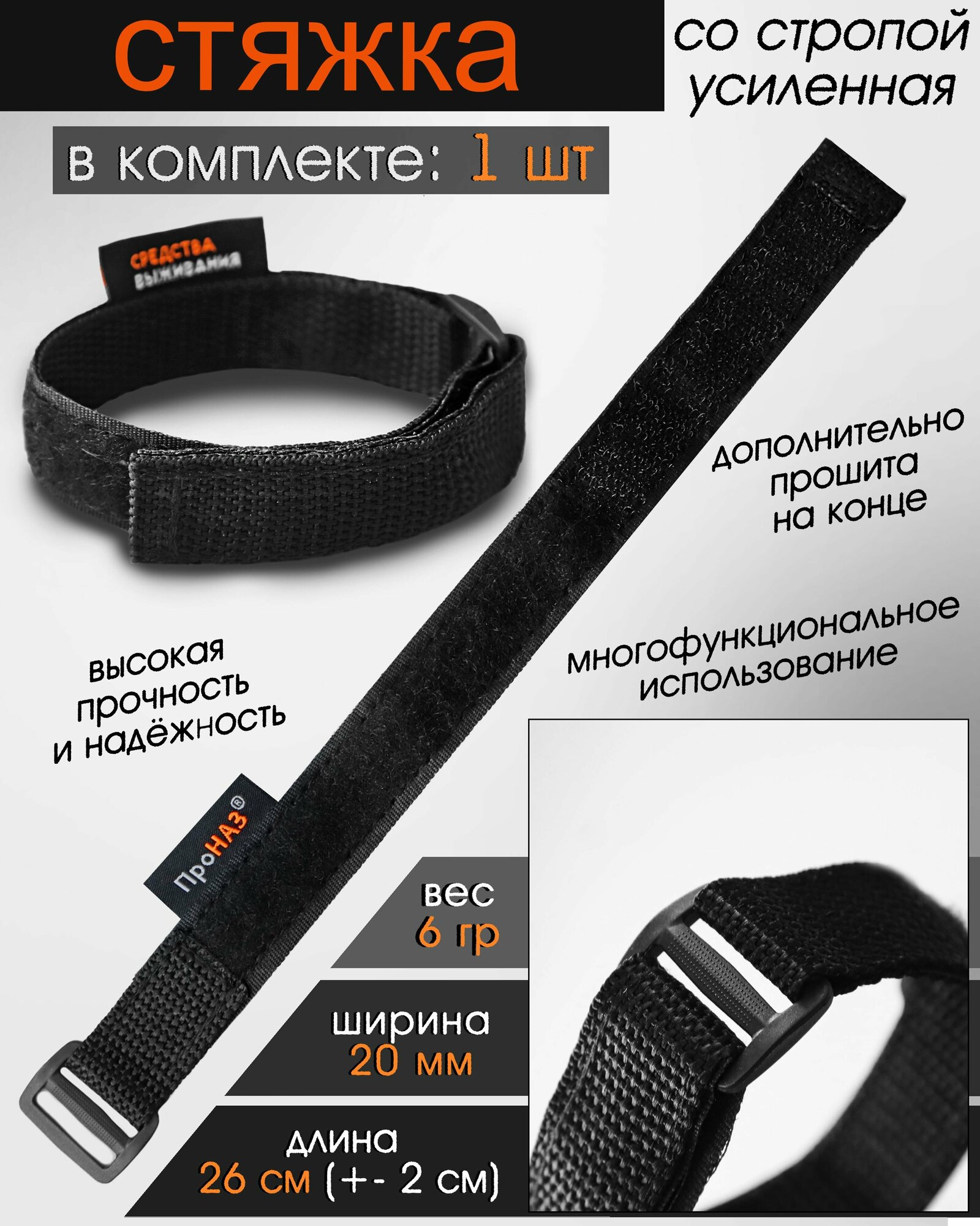 Стяжка с липучкой нейлоновая для крепления снаряжения, аккумуляторов / Ремешок для фиксации груза и экипировки / Стяжка-липучка 20х260мм 1 шт информация:
