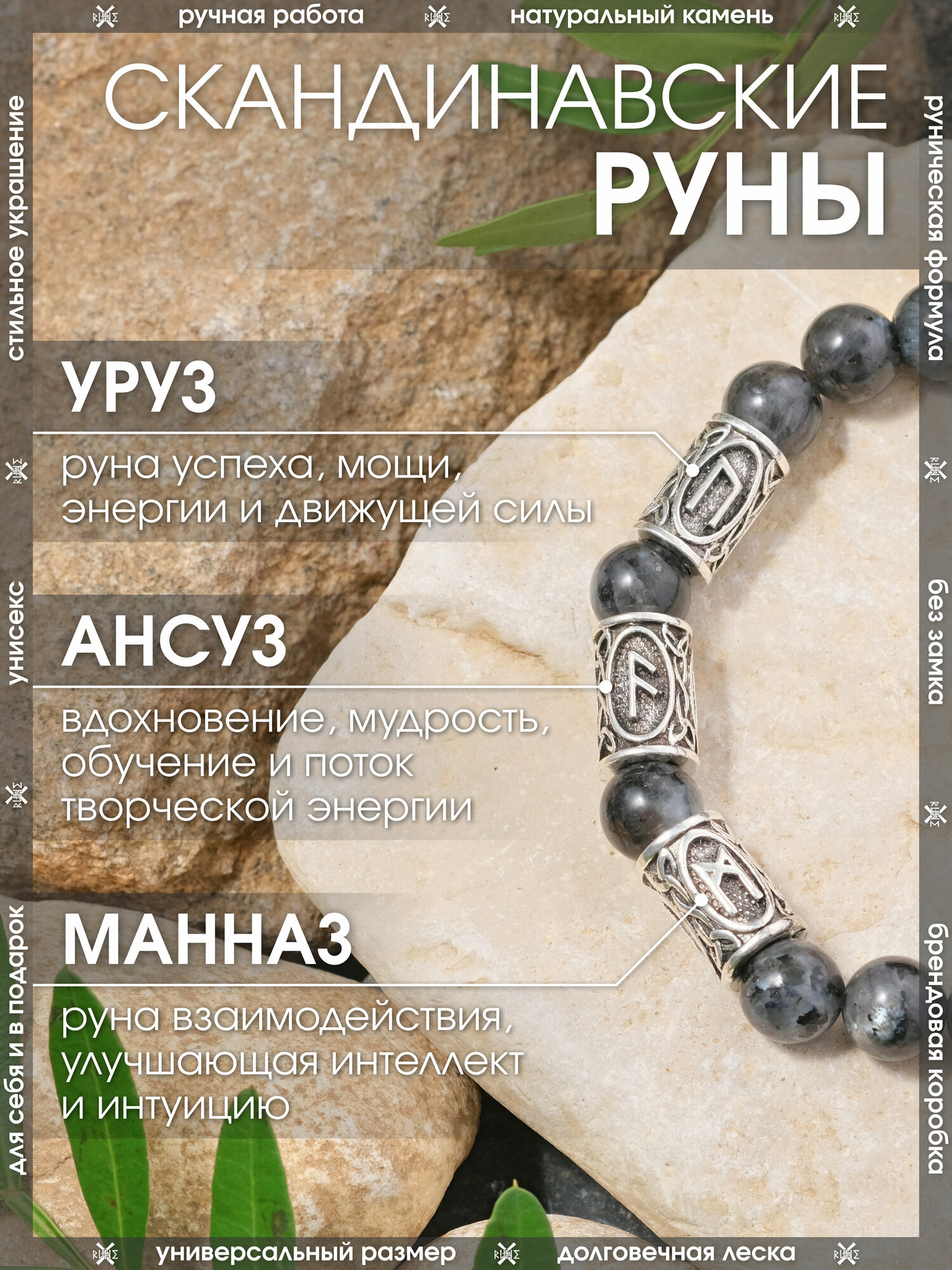 10 цен на Браслет из натурального камня Лабрадор/Руническая формула личностного и карьерного роста/Тёмно-серый браслет-оберег, бижутерия
