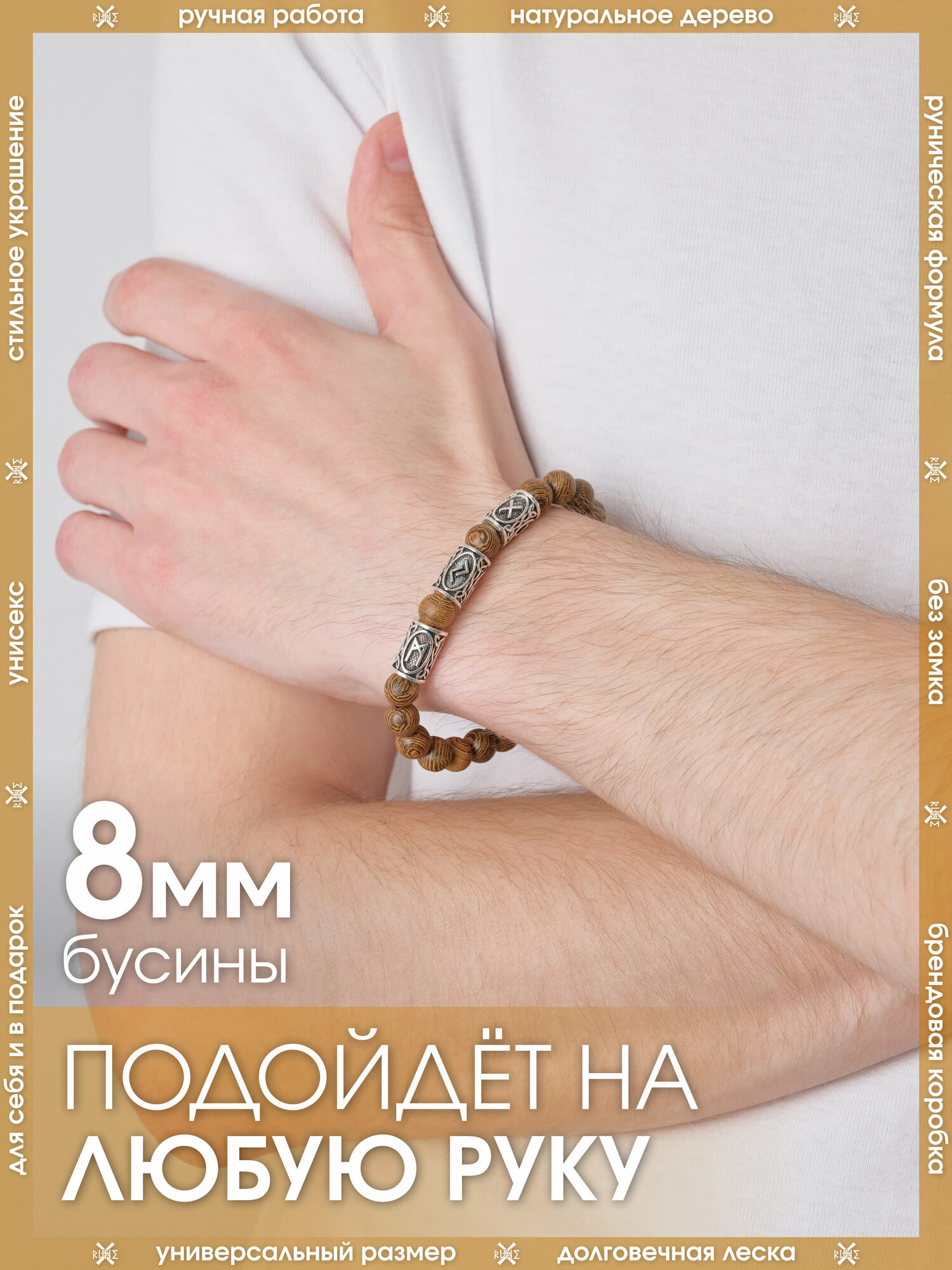 10 цен на Браслет из дерева Венге/Руническая формула баланса, спокойствия и гармонии/Древесный браслет-оберег, бижутерия