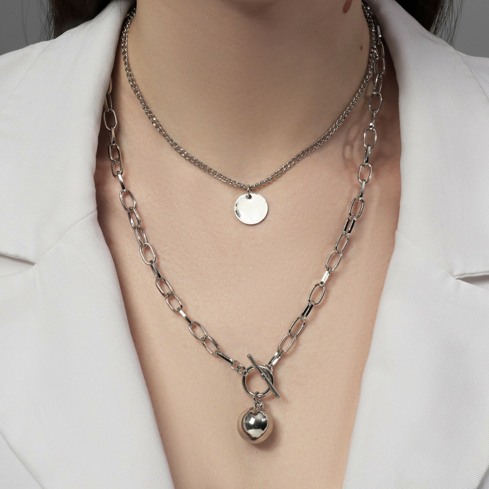Кулон "Цепь" шар, медальон, цвет серебро, 65 см 5600167 информация: