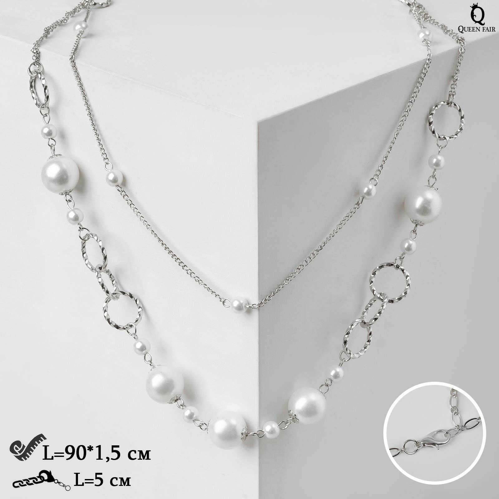 10 цен на Бусы Queen Fair, пластик, длина 95 см, белый, серебряный