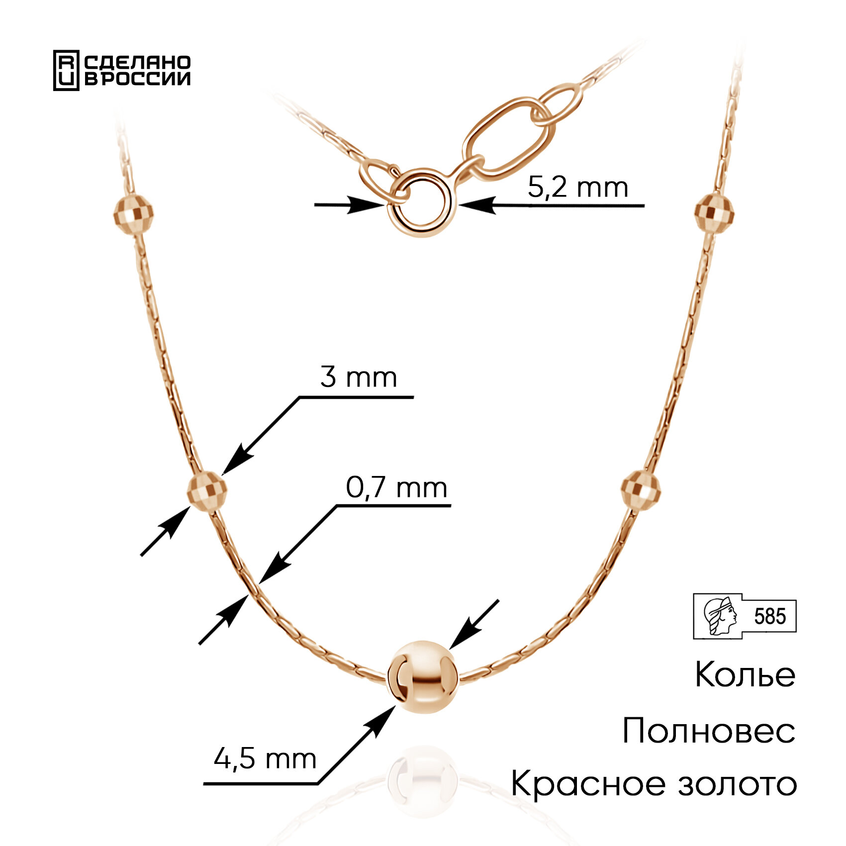 Колье ВИКИ, красное золото, 585 проба, длина 50 см., красный 24 156 ₽