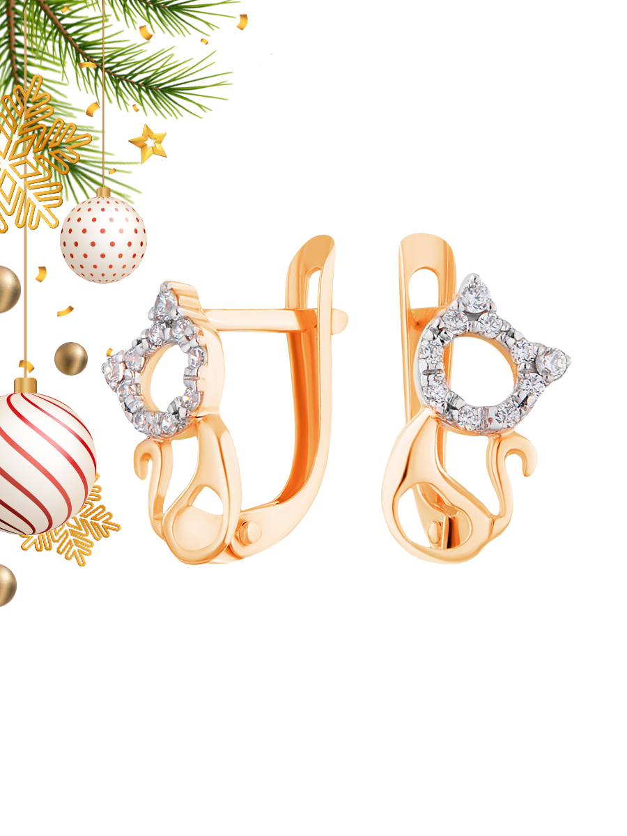 10 цен на Серьги золотые с фианитами "Кошка" арт. 11210154