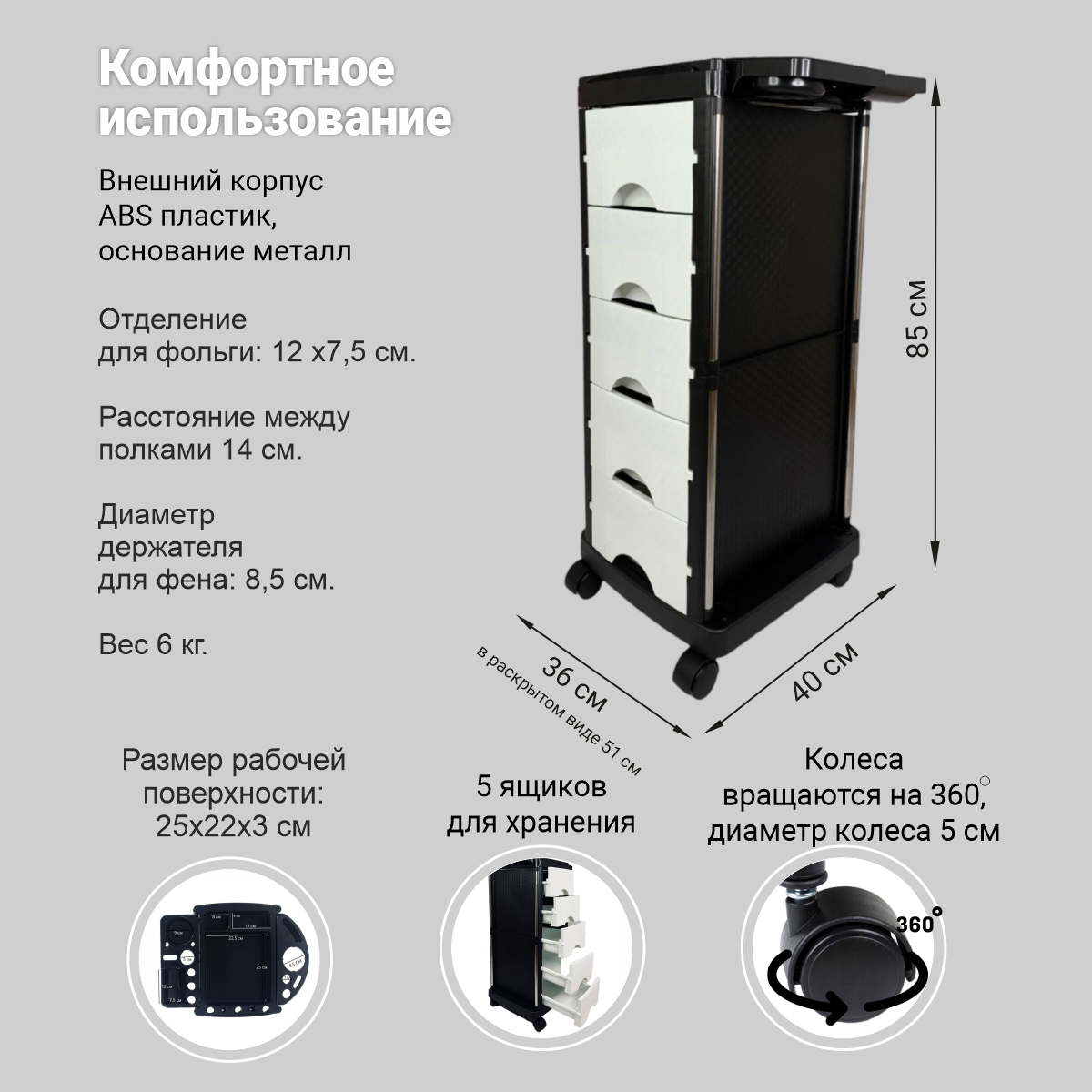 Тележка парикмахерская черная OKIRO Т 08 белая /тележка для парикмахера /этажерка для салона красоты информация: