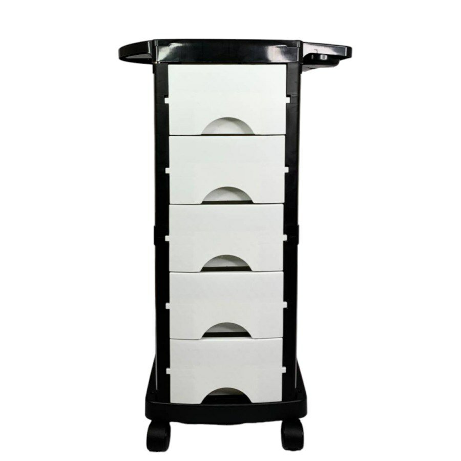 Тележка парикмахерская OKIRO F-037 черно-белая / тележка для парикмахера / этажерка для мастера