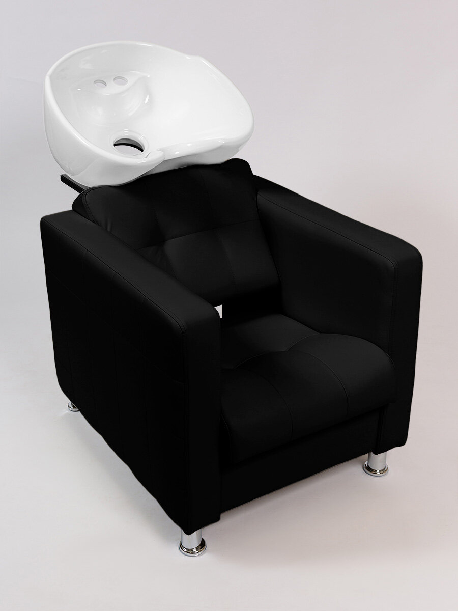 Парикмахерская мойка с креслом Квадрат, глубокая раковина белого цвета, Уютный мастер, черный информация: