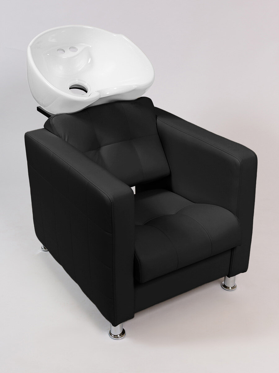 Парикмахерская мойка с креслом Квадрат, глубокая раковина белого цвета, Уютный мастер, черный 45 260 ₽