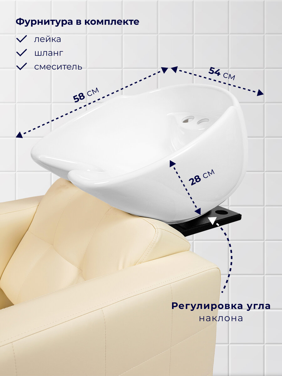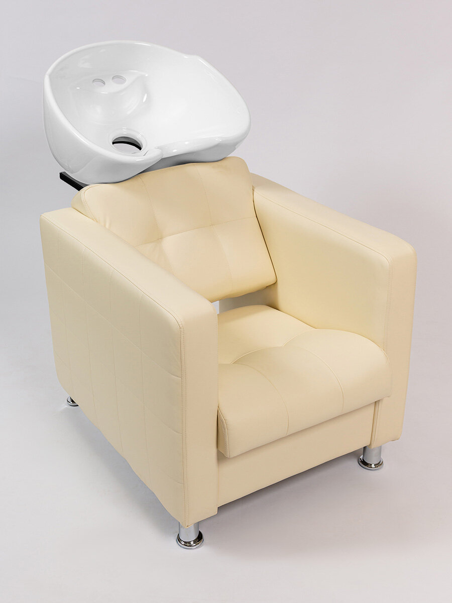 10 цен на Парикмахерская мойка с креслом Квадрат, глубокая раковина белого цвета, Уютный мастер, кремовый