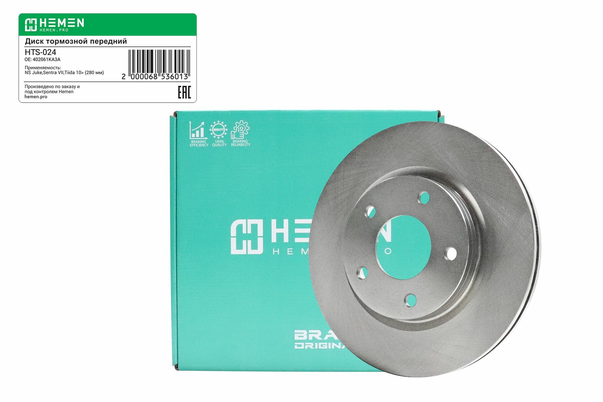 Отзывы на Диск тормозной передний Nissan Juke, Sentra VII, Tiida с 2010г>, диам. 280 мм (HTS024)