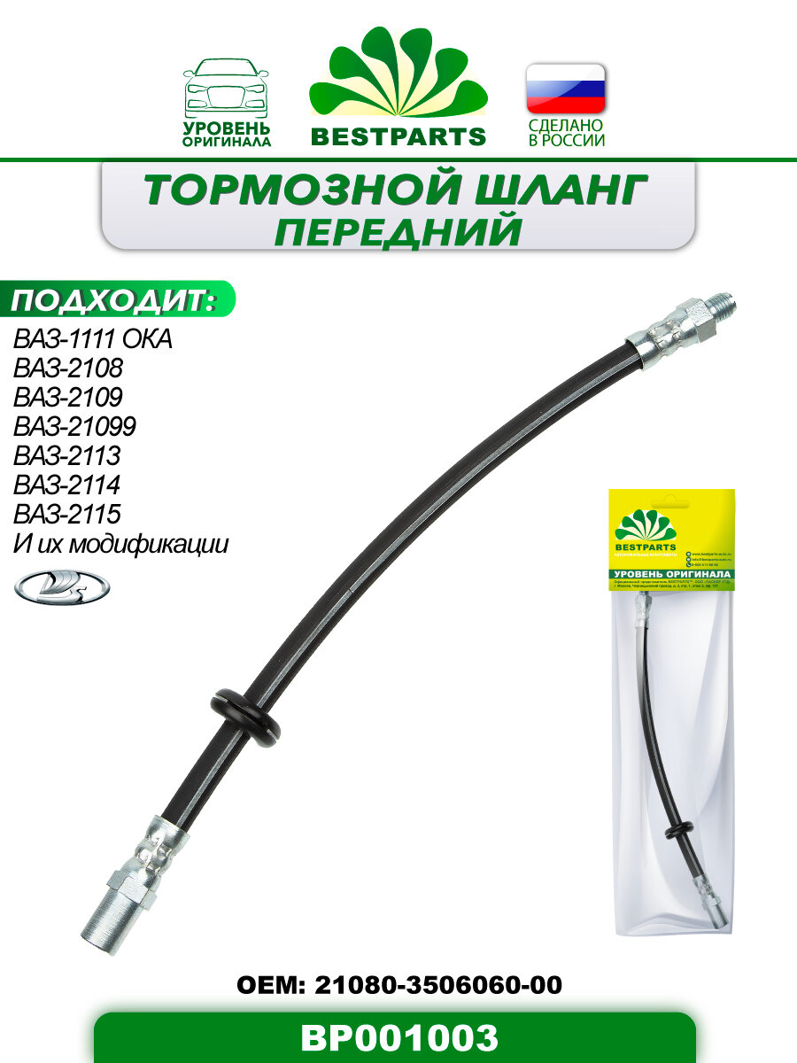 Шланг тормозной передний ВАЗ-2108, ВАЗ-21099, LADA Samara 2113-2115, ОКА BESTPARTS BP001003 информация: