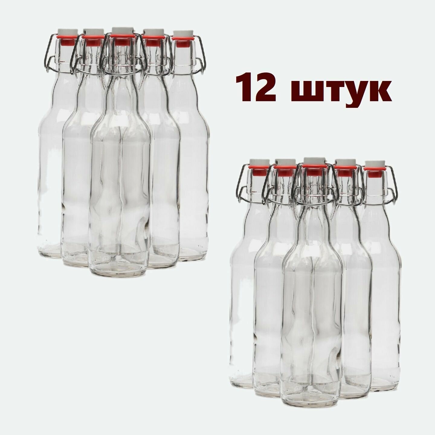 10 цен на Бугельная бутылка с бугельной пробкой, стеклянная, прозрачная 0,5 литра 12 штук