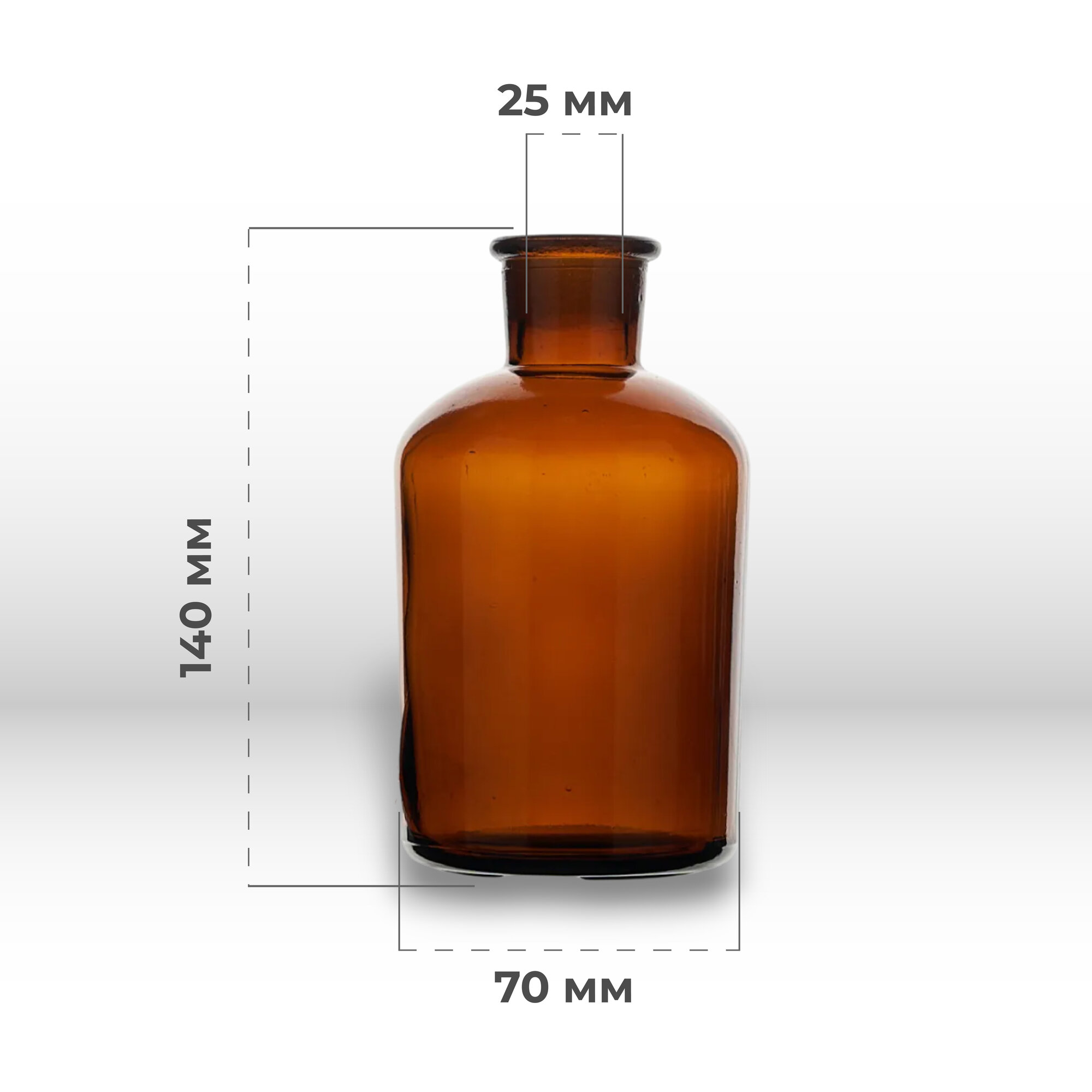 Склянка 250 мл из темного стекла с узкой горловиной и притертой пробкой для реактивов СТУ-250 информация: