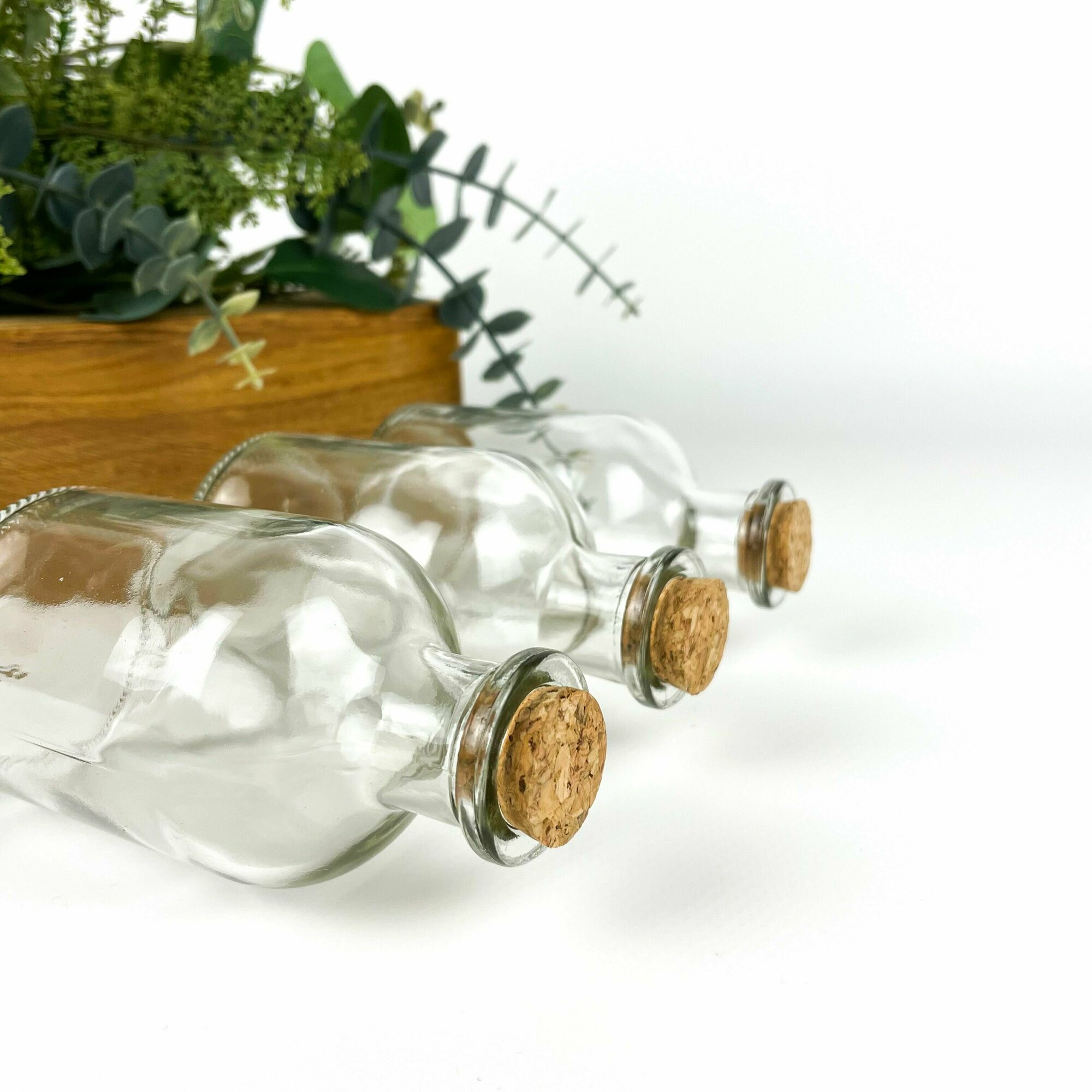 Баночки - бутылочки с пробкой, стеклянные, прозрачные 125 мл, 5,8*10 см, набор 3 штуки информация: