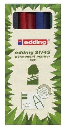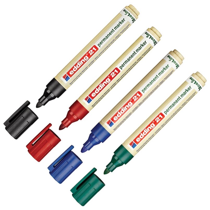 Набор перманентных маркеров Edding Eco E-21 (1,5-3мм, круглый наконечник, синий/черный/красный/зеленый) 4шт. (E-21/4S) информация:
