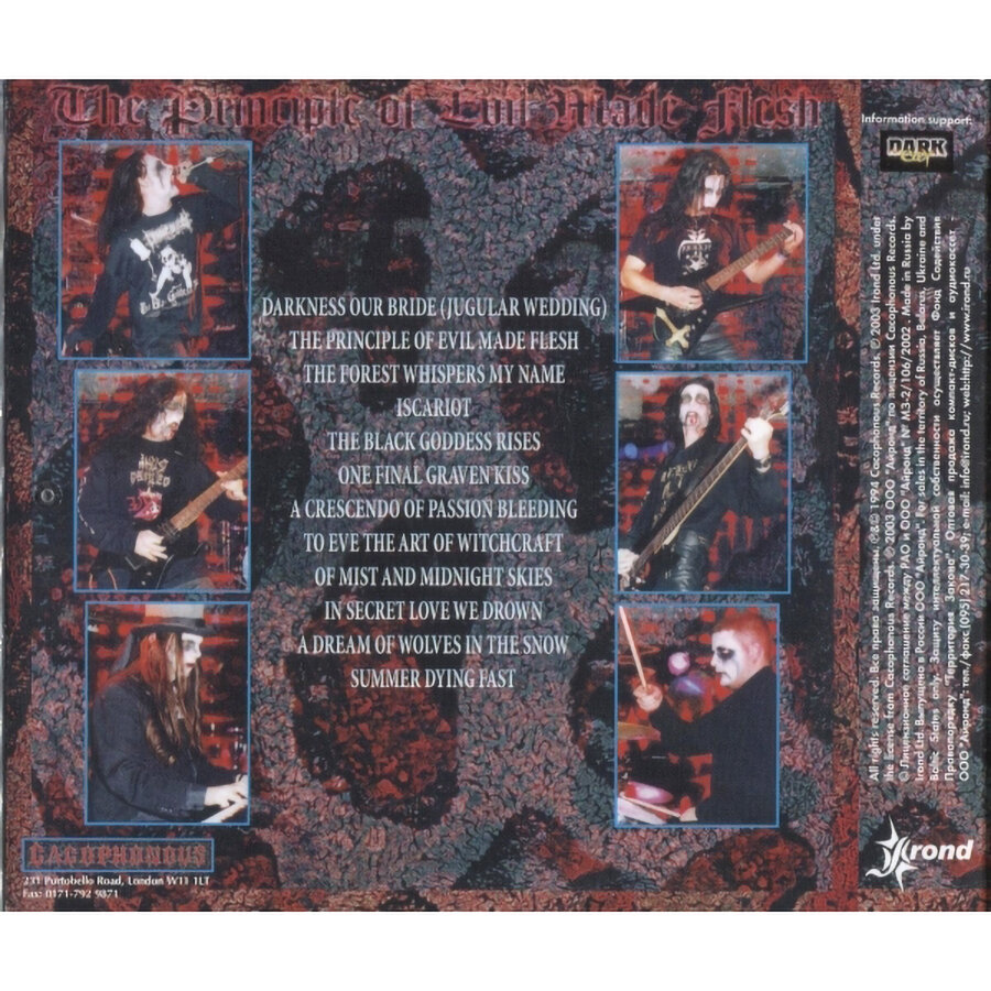 | Треклист | 1. Darkness Our Bride (Jugular Wedding) 2. The Principle Of Evil Made Flesh 3. The Forest Whispers My Name 4. Iscariot 5. The Black Goddess Rises 6. One Final Graven Kiss 7. A Crescendo Of Passion Bleeding 8. To Eve The Art Of Witchcraft 9. Of Mist And Midnight Skies 10. In Secret Love We Drown 11. A Dream Of Wolves In The Snow 12. Summer Dying Fast 13. Imperium Tenebrarum |