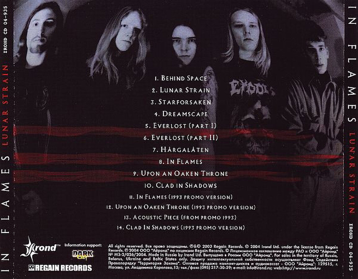 | Треклист | 1. Behind Space 2. Lunar Strain 3. Starforsaken 4. Dreamscape 5. Everlost (Part I) 6. Everlost (Part II) 7. Hårgalåten 8. In Flames 9. Upon An Oaken Throne 10. Clad In Shadows Bonus Track 11. In Flames (1993 Promo Version) 12. Upon An Oaken Throne (1993 Promo Version) 13. Acoustic Piece (From Promo 1993) 14. Clad In Shadows (1993 Promo Version) |