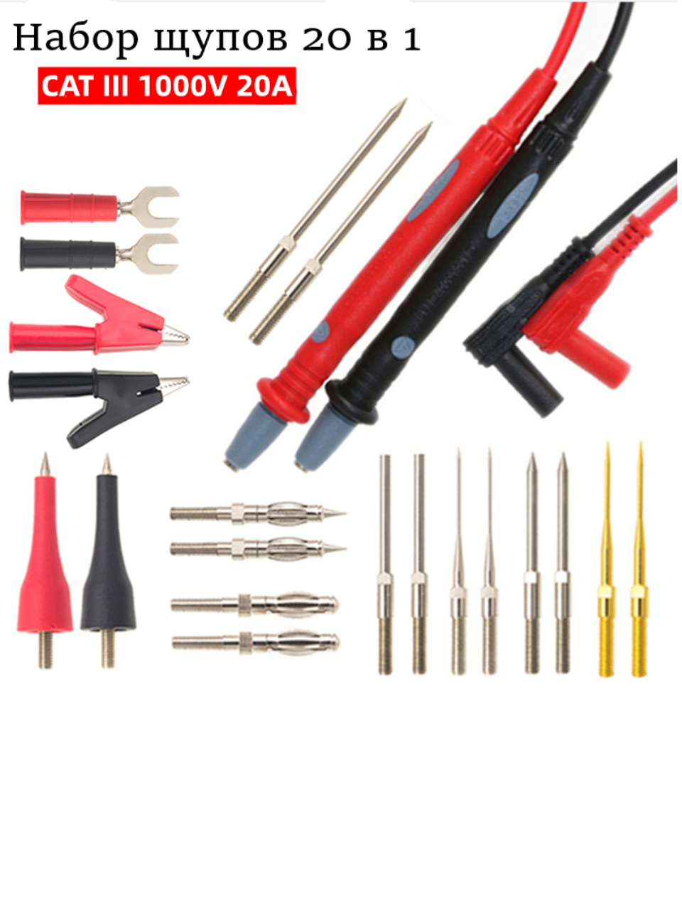 Отзывы на Щупы в комплекте со сменными насадками 20 в 1 Силиконовый кабель устойчива к холоду и высоким температурам 1000V 20A