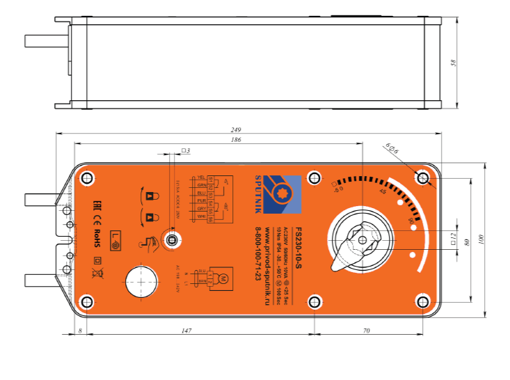 Электропривод SPUTNIK FS230-10-S с возвратной пружиной информация: