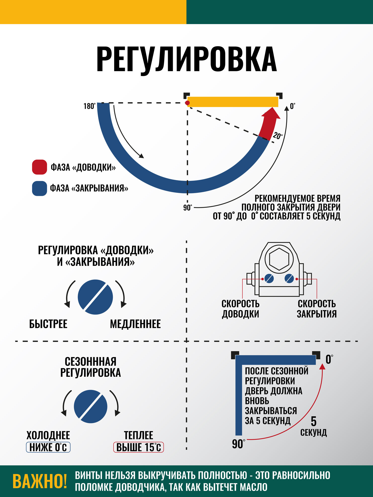 | Внутренний механизм доводчика | шестеренно-реечный |