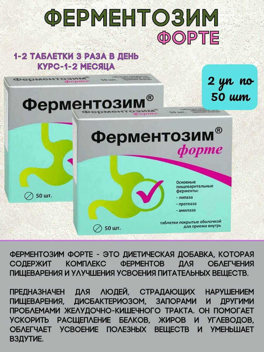 Ферментозим Форте 2уп*50таблеток информация:
