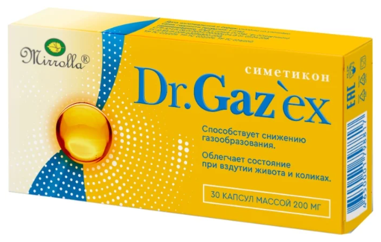 Симетикон Др.Газекс капс 200 мг x30 информация: