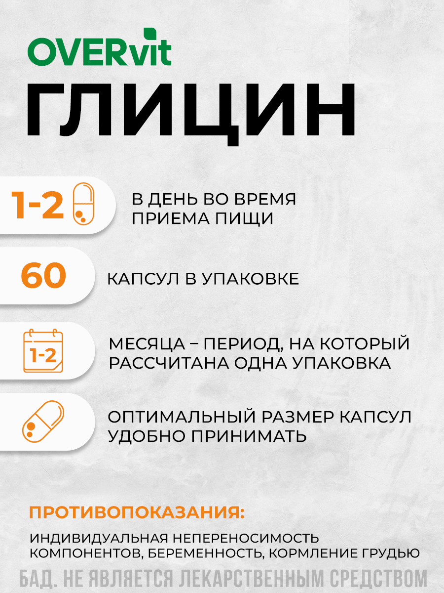 Отзывы на Глицин, стимуляция умственной активности, витамины для мозга, витамины для нервной системы, 60 капсул