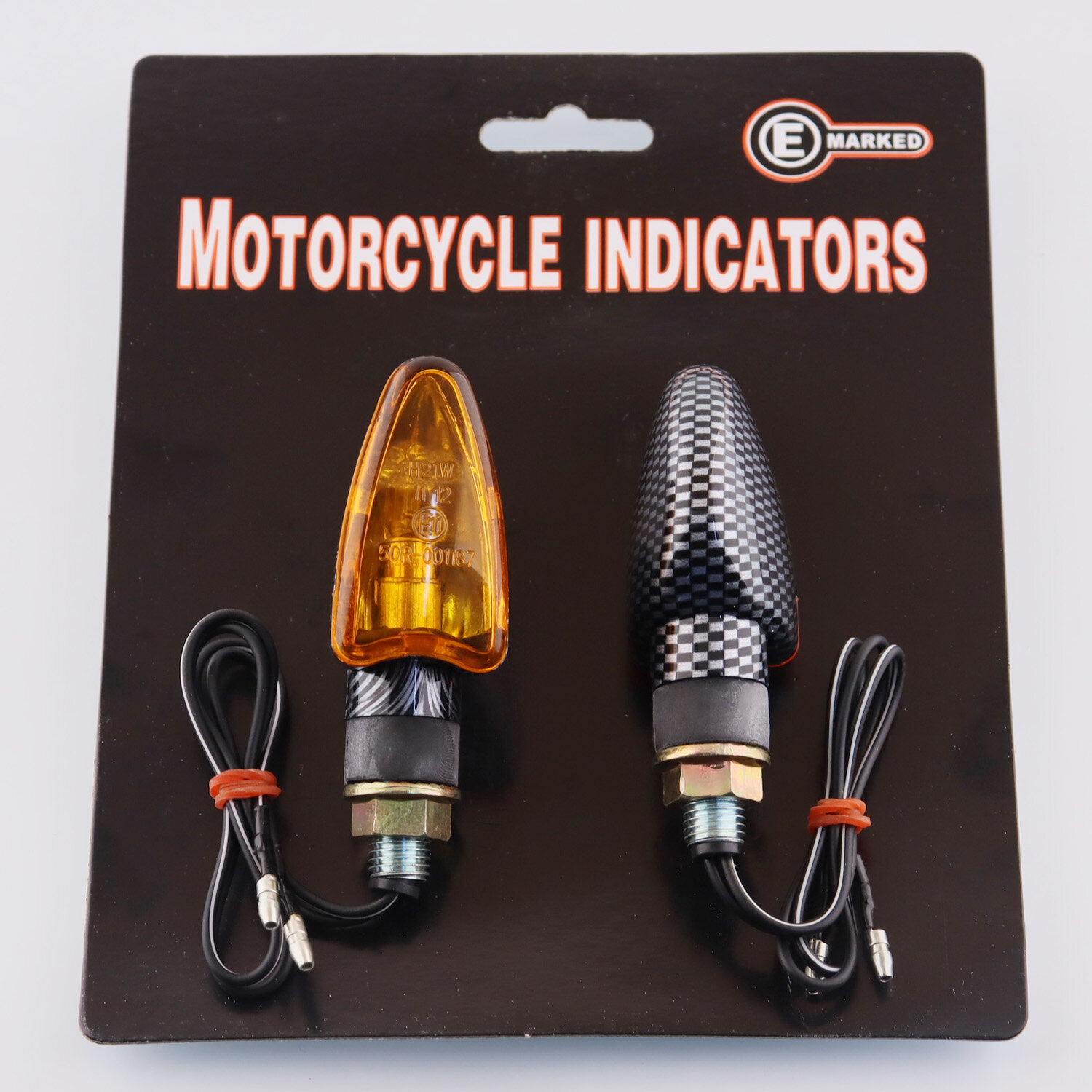 Повороты мини (пара) стреловидные (карбон, желтое стекло) "E-MARKED" информация:
