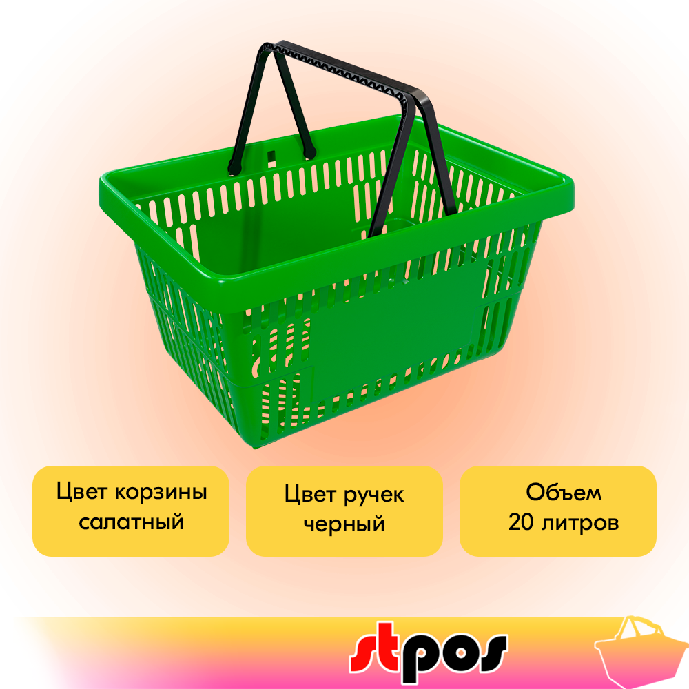 10 цен на Корзина покупательская пластиковая с 2 ручками, 20 л, усиленная, RAL6018, Салатный