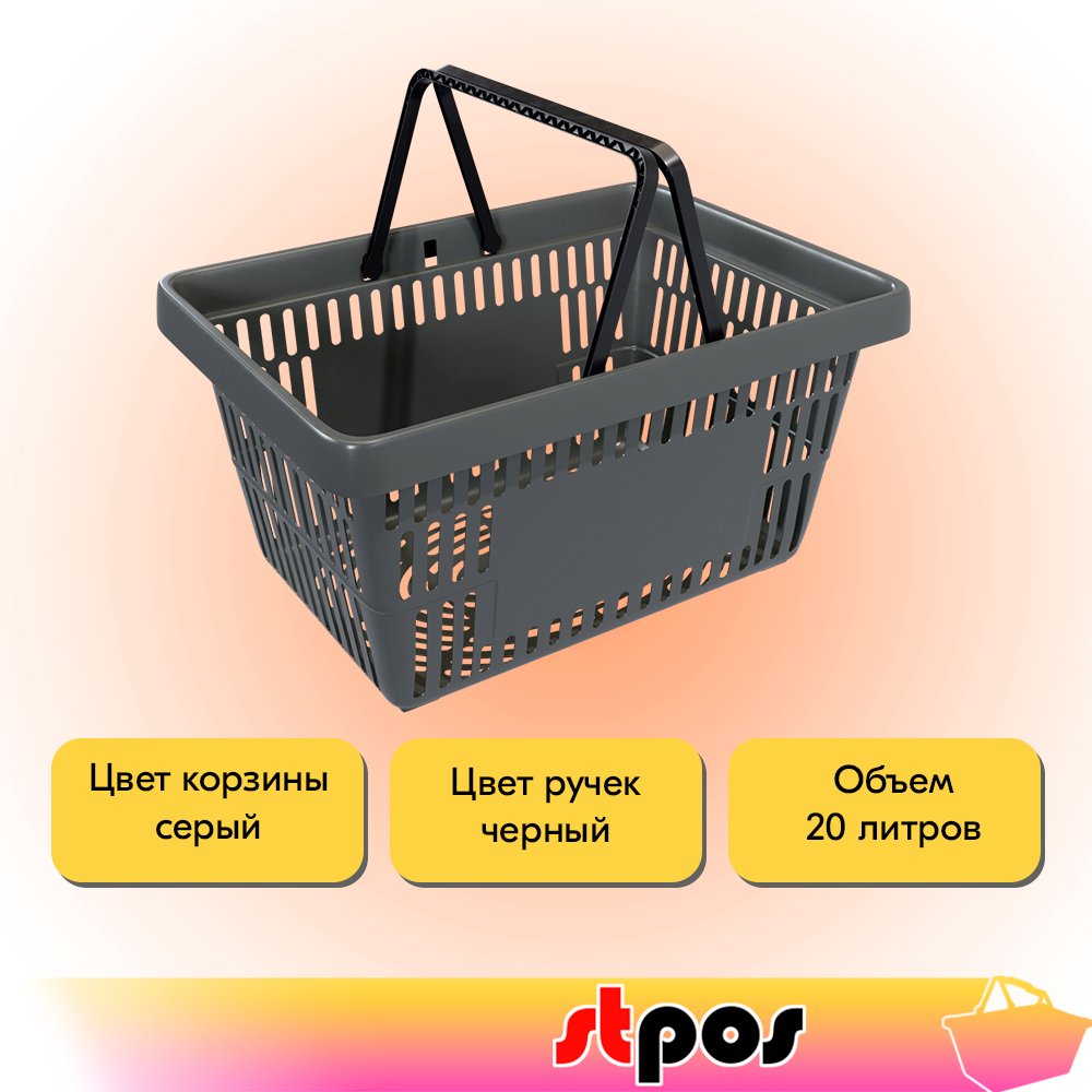 Корзина покупательская пластиковая с 2 ручками, 20 л, усиленная, RAL7005 Серый 1 457 ₽