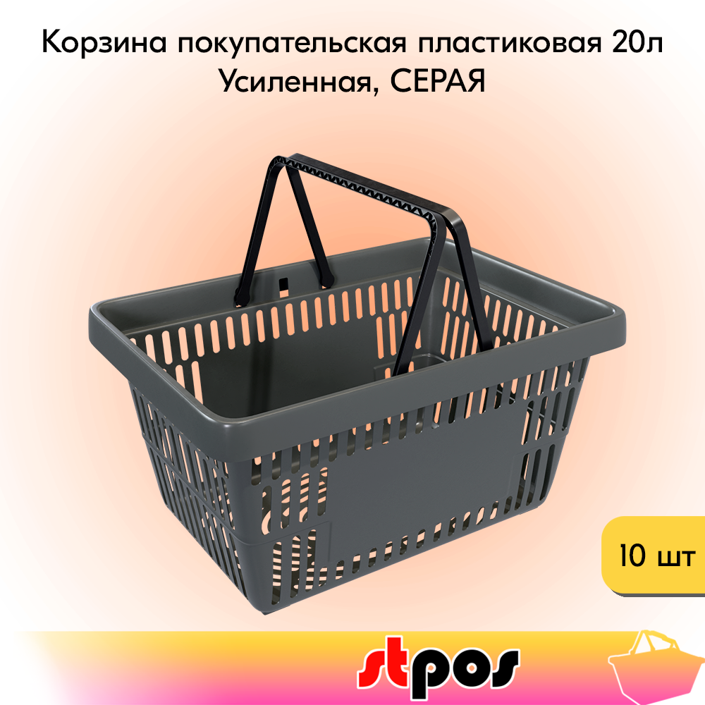 Набор Корзин покупательских пластиковых с 2 ручками, 20 л, Усиленных, Серый 10 шт информация: