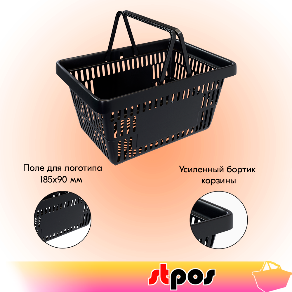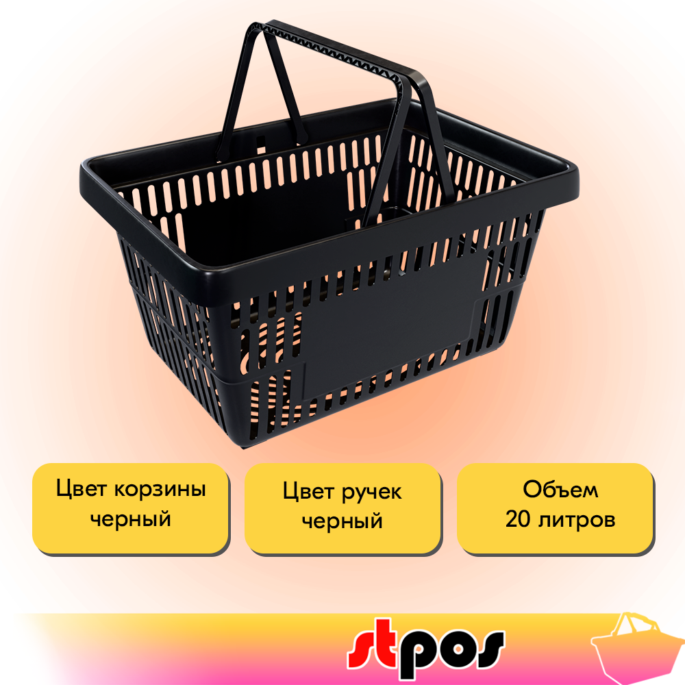 Корзина покупательская пластиковая чёрная с 2 черными ручками усиленная ROCK 20 л 1 391 ₽