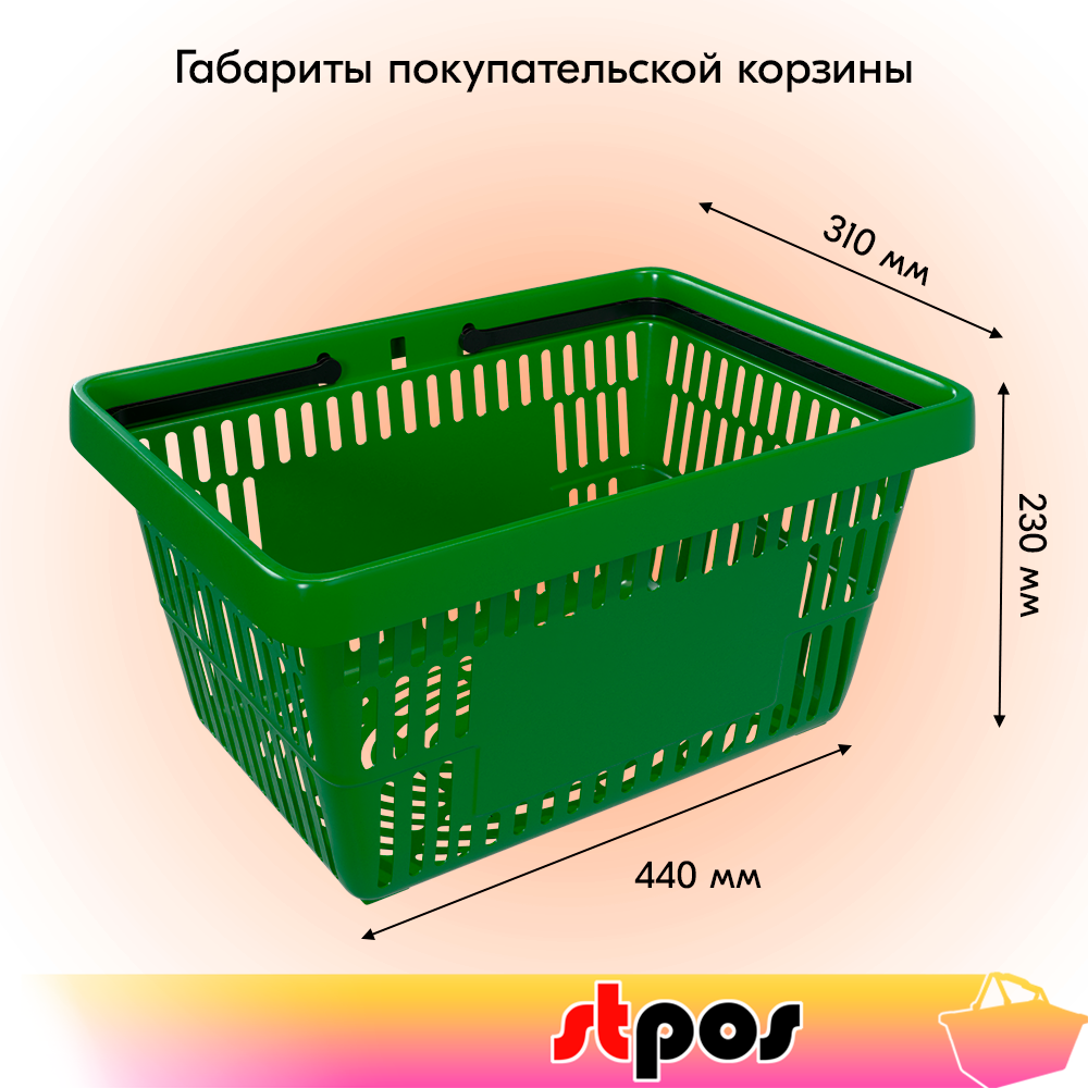 Корзина покупательская пластиковая с 2 ручками, 20 л, усиленная, RAL6018, Салатный 1 457 ₽