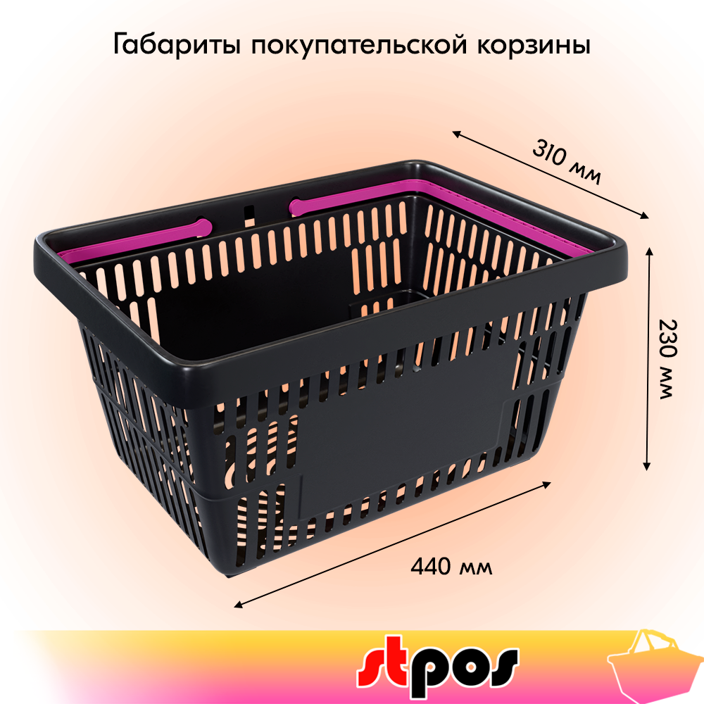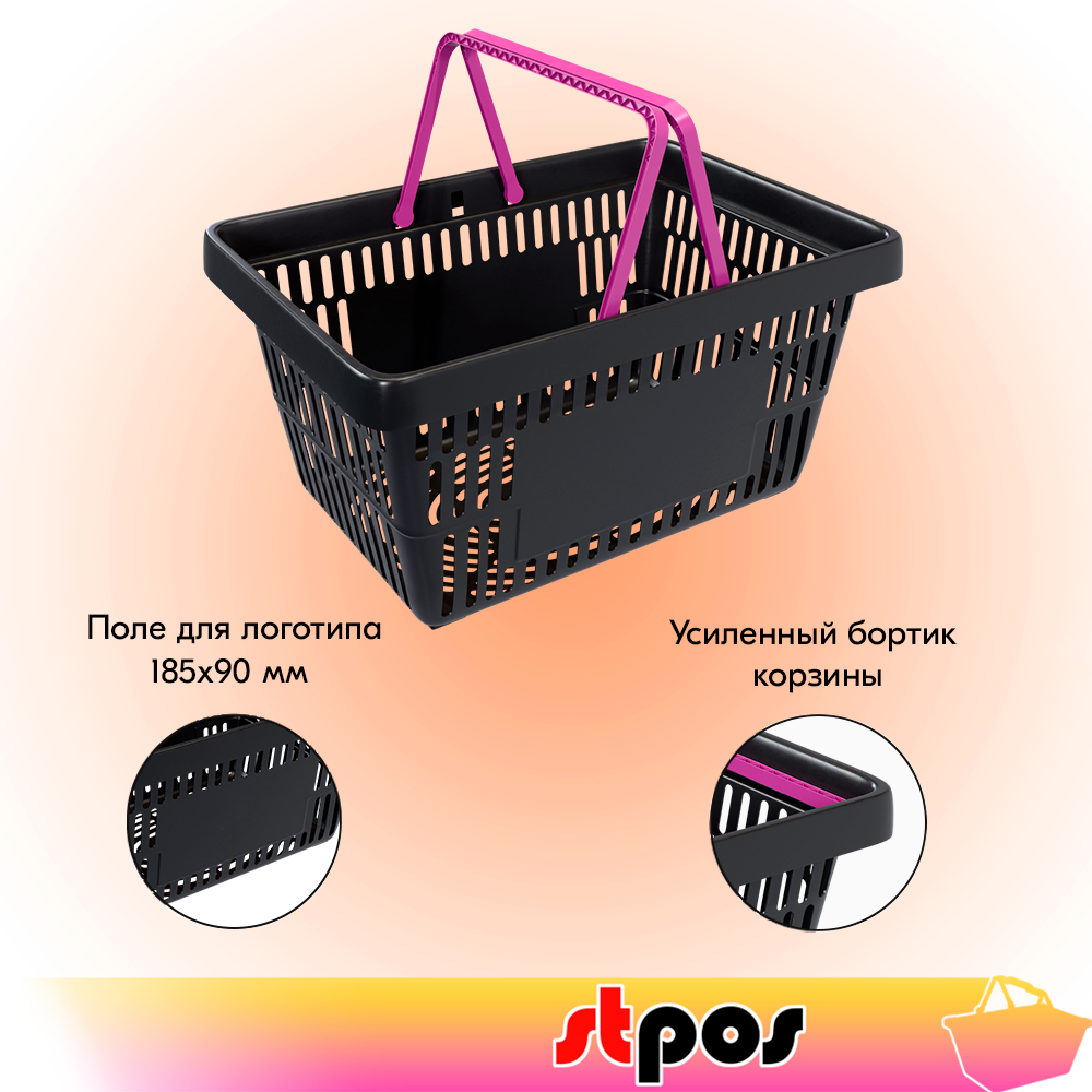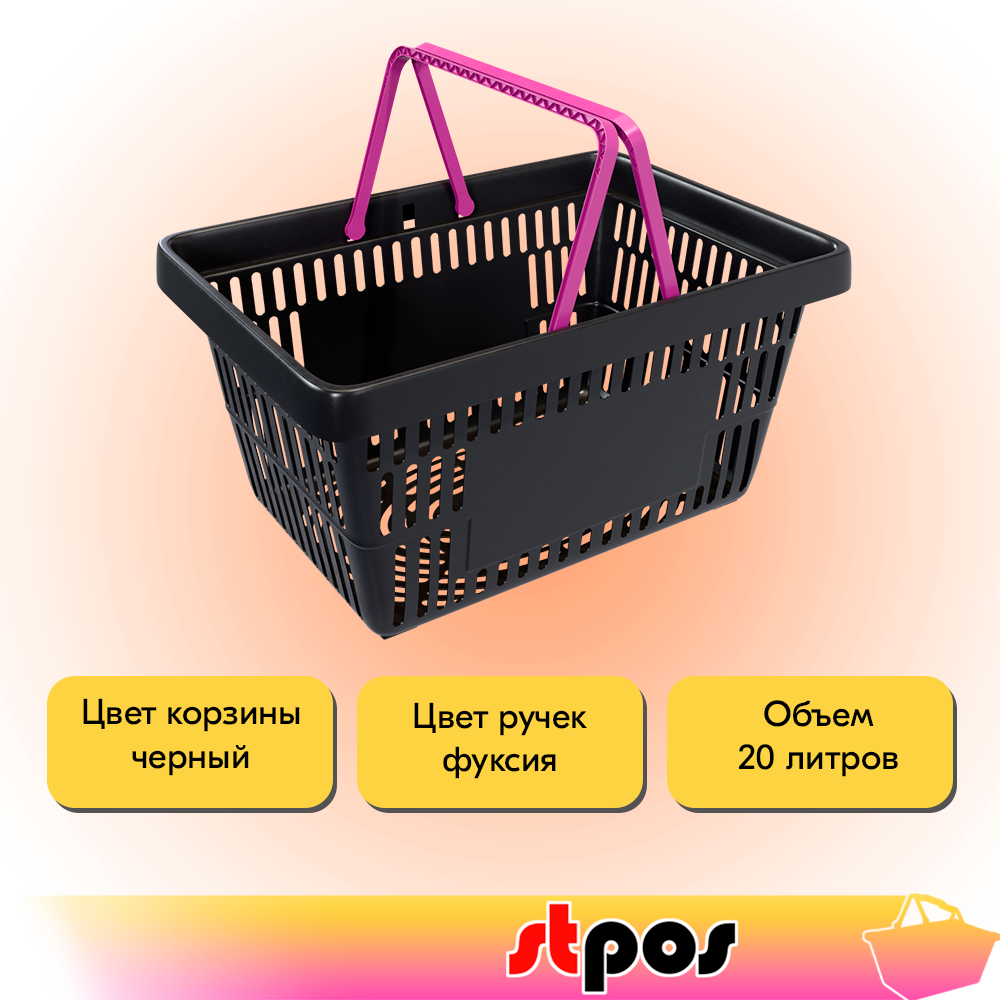 Корзина покупательская пластиковая чёрная с 2 ручками цвета фуксия усиленная ROCK 20 л 1 607 ₽