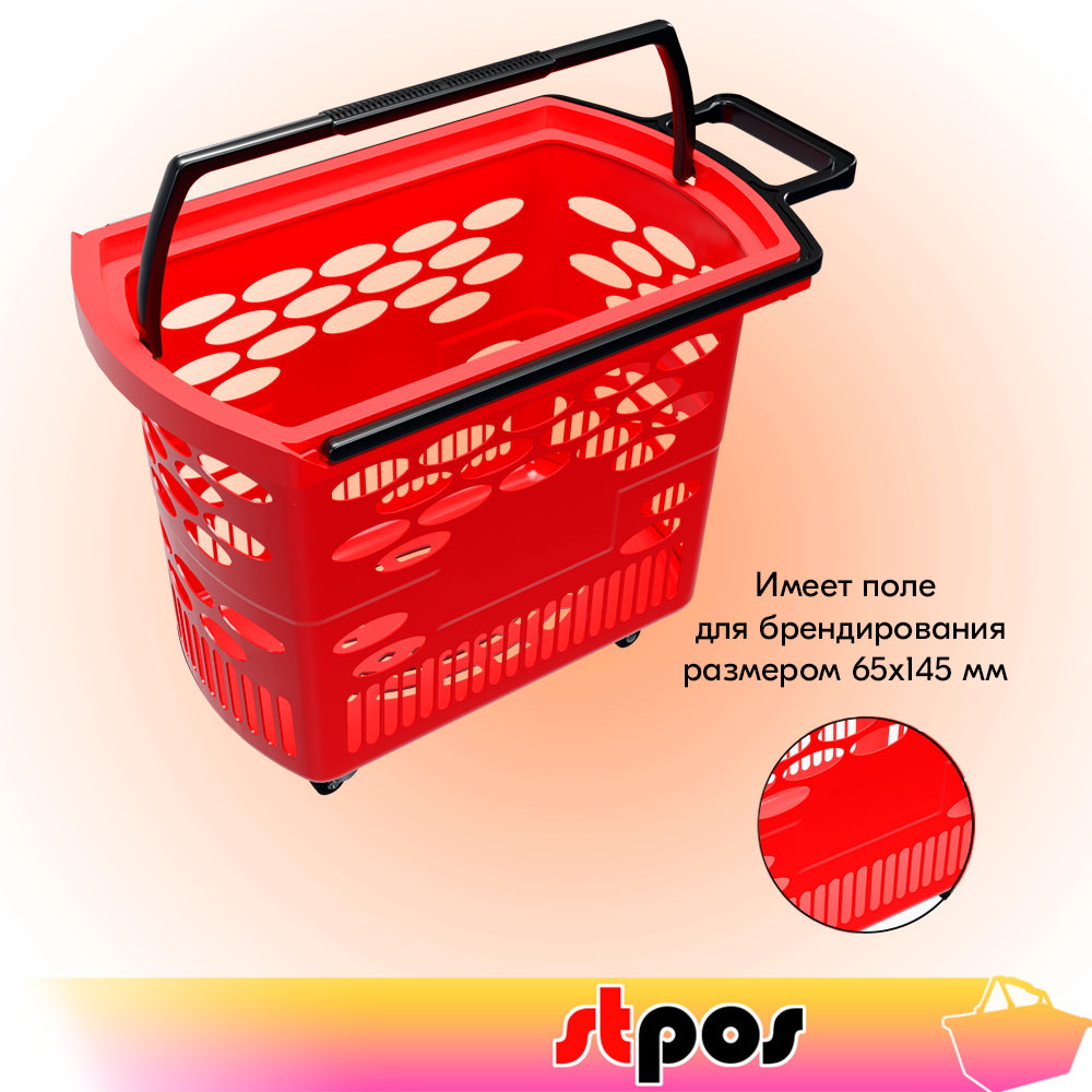 Корзина тележка пластиковая 4 колеса 38л BASKET-38, Красный информация: