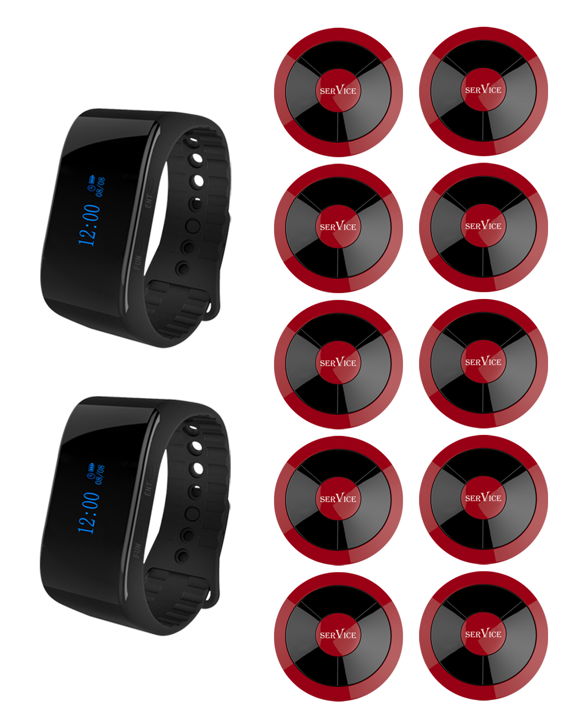 Комплект вызова официанта для ресторана: Часы пейджер "эконом" - 1 шт. и кнопка Смайл "Счет, Вызов, Меню, Отмена" - 10 шт.