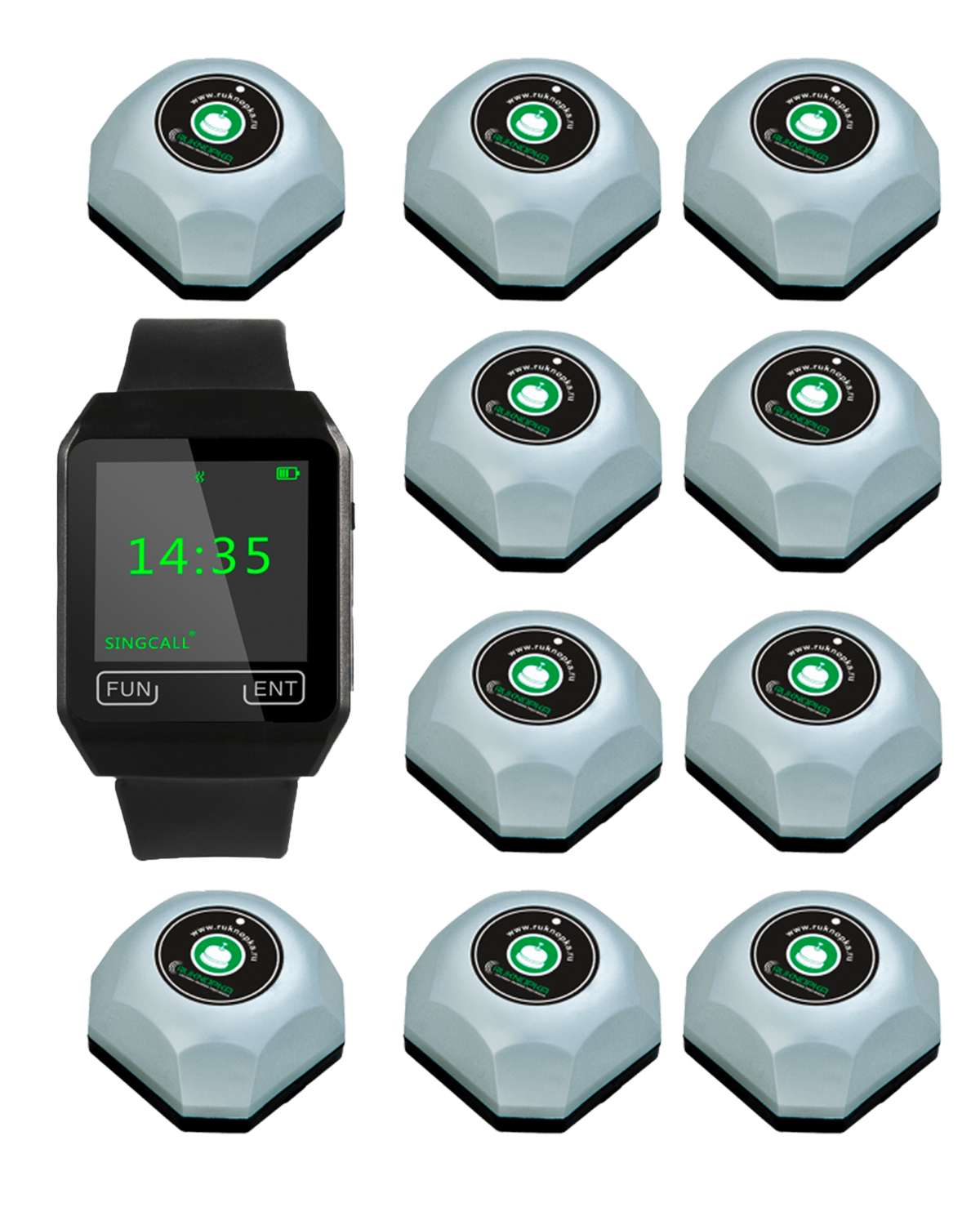 Комплект вызова официанта для ресторана: Часы пейджер "эконом" - 1 шт. и кнопка Смайл "Счет, Вызов, Меню, Отмена" - 10 шт.