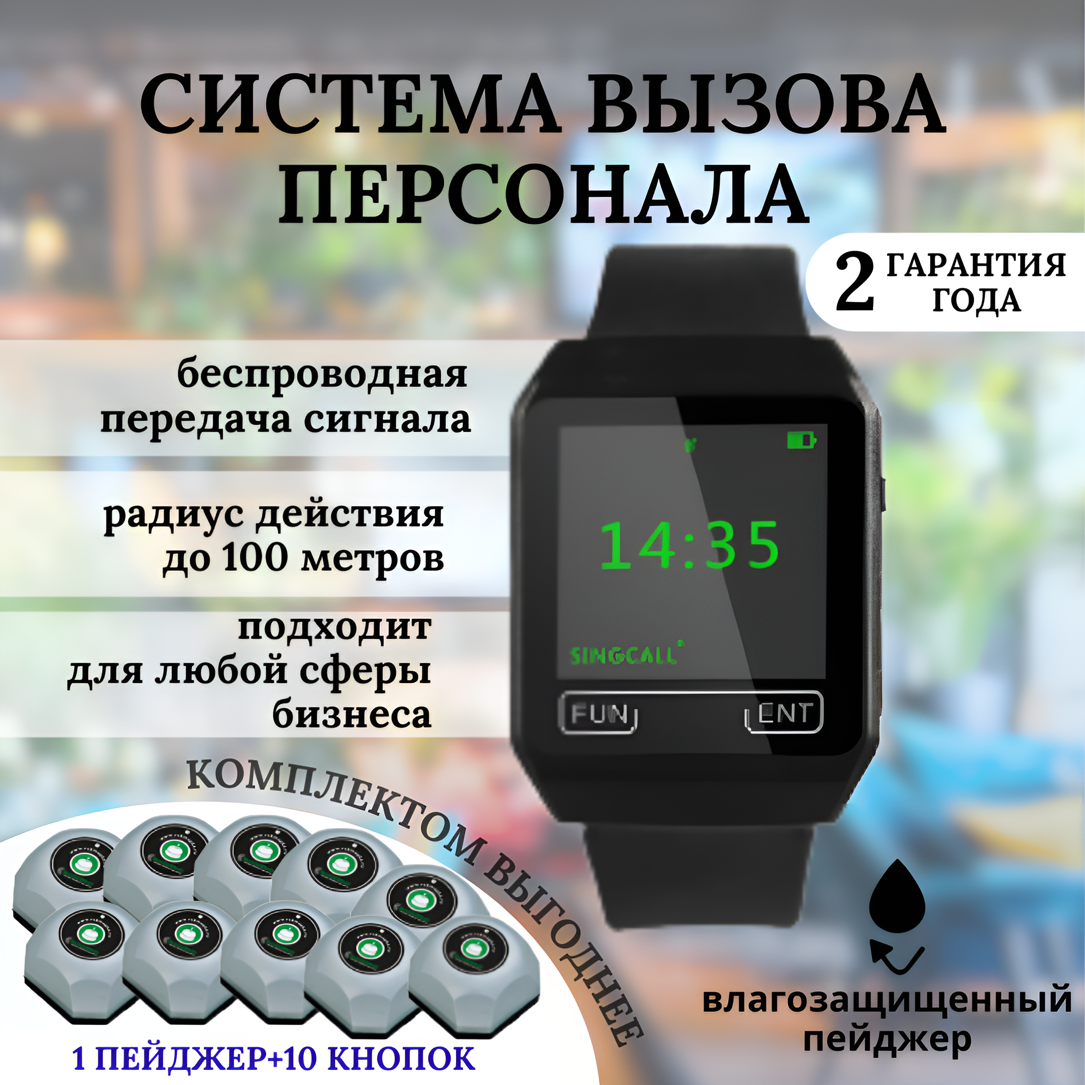 10 цен на Комплект вызова персонала №18 (влагозащищённый пейджер персонала + 10 кнопок вызова)