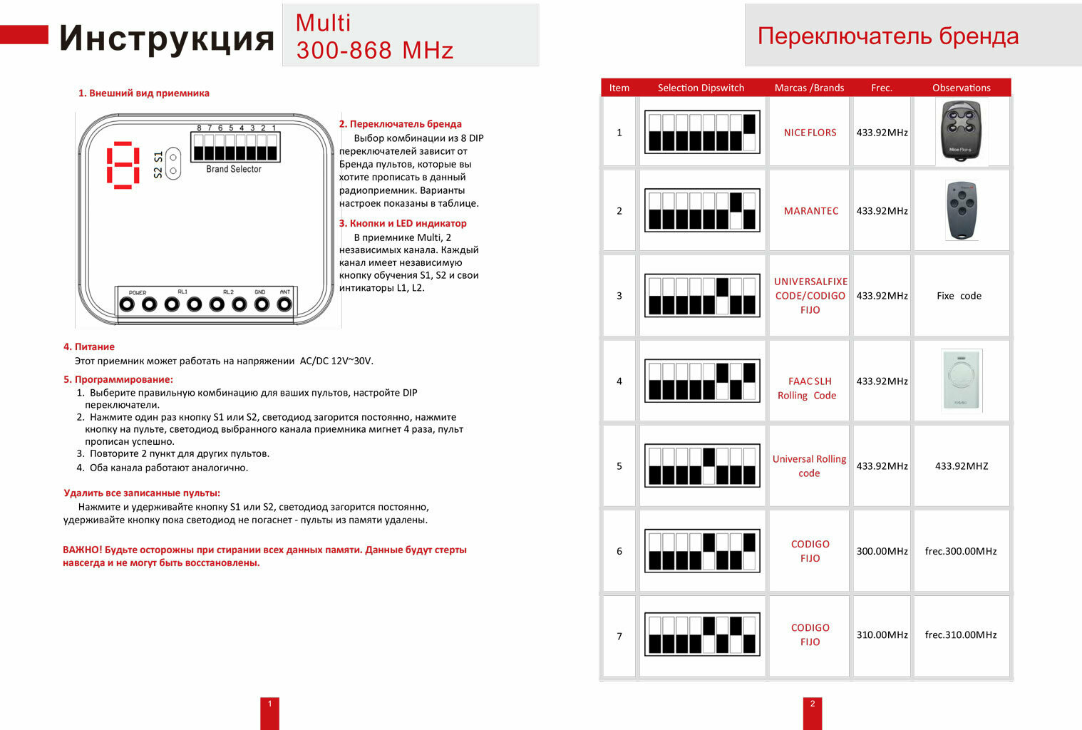 QPG MULTI — универсальный внешний приемник 433-868 МГц, до 200 пультов информация: