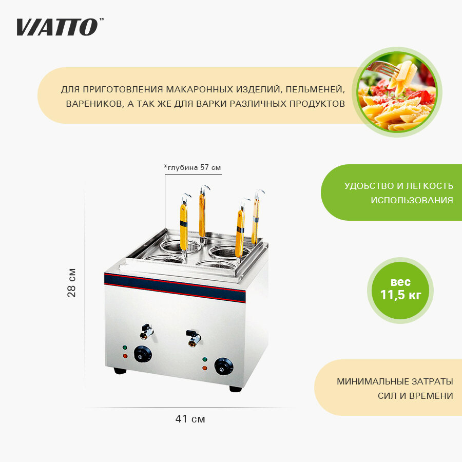 10 цен на Макароноварка настольная электрическая Viatto Commercial , арт. VPC-4. Электрокастрюля для приготовления макарон. Мультиварка