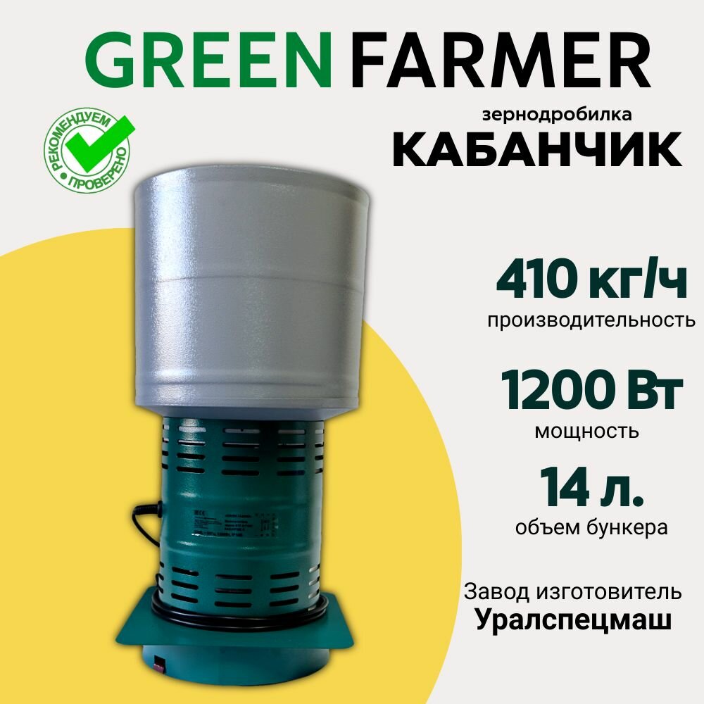 10 цен на Зернодробилка GREEN FARMER 410 кг/ч, Кабанчик + запасной НОЖ, измельчитель зерна, кормоизмельчитель