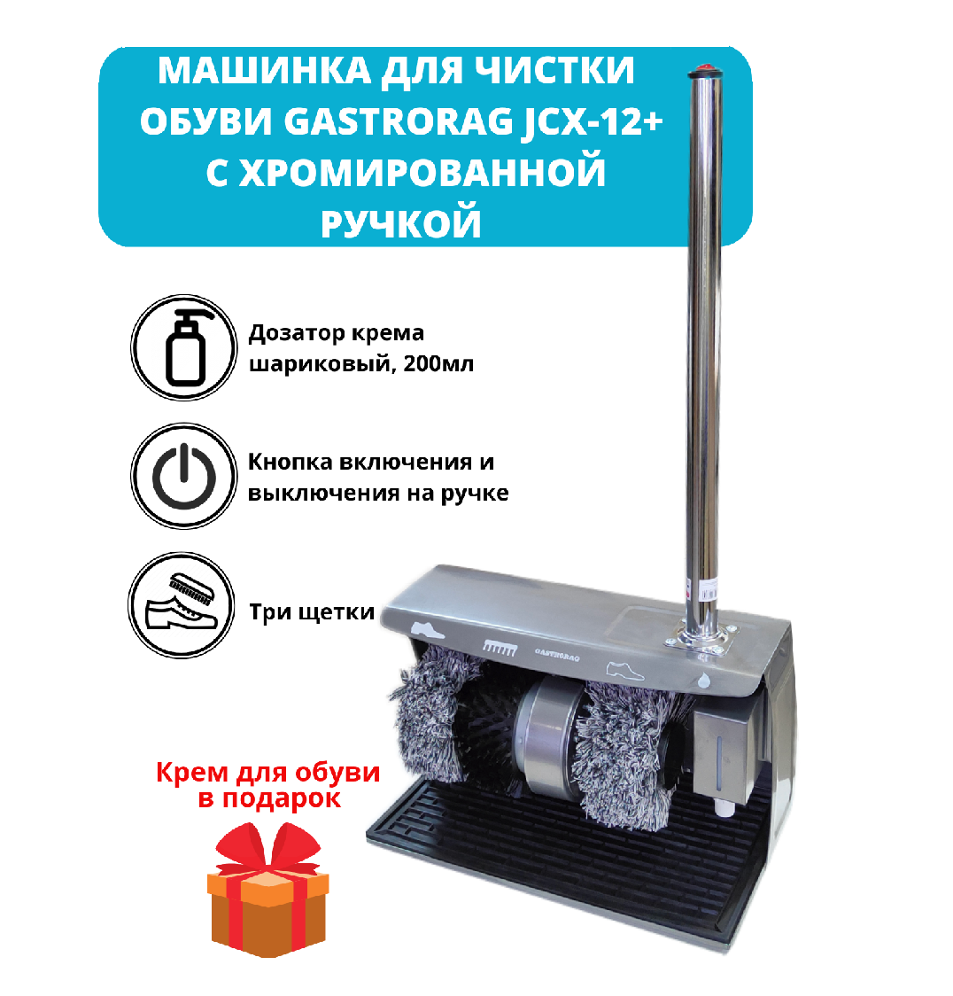 Машинка для чистки обуви Gastrorag JCX-12 + с хромированной ручкой информация: