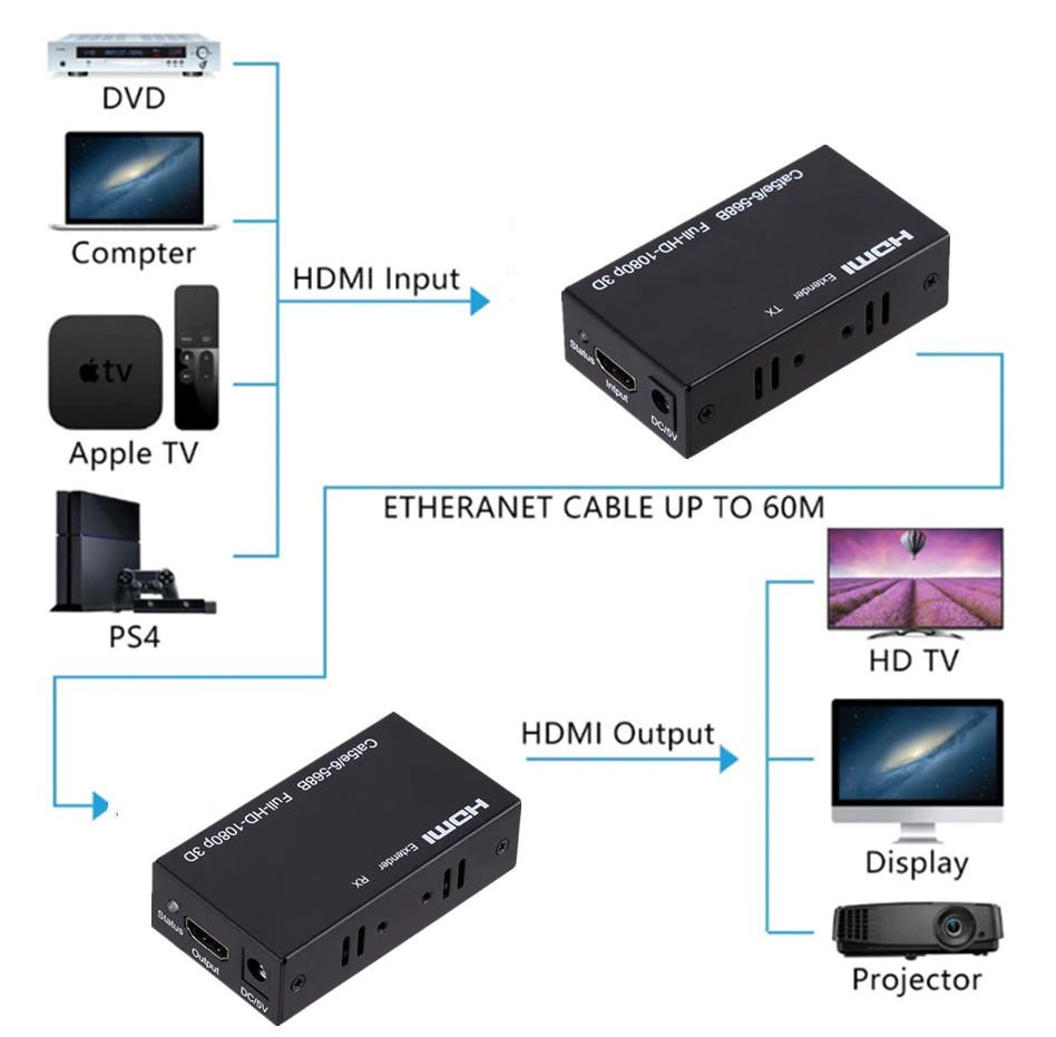 Комплект для удлинения HDMI сигнала до 60 м. (через кабель LAN CAT-5e/6) информация: