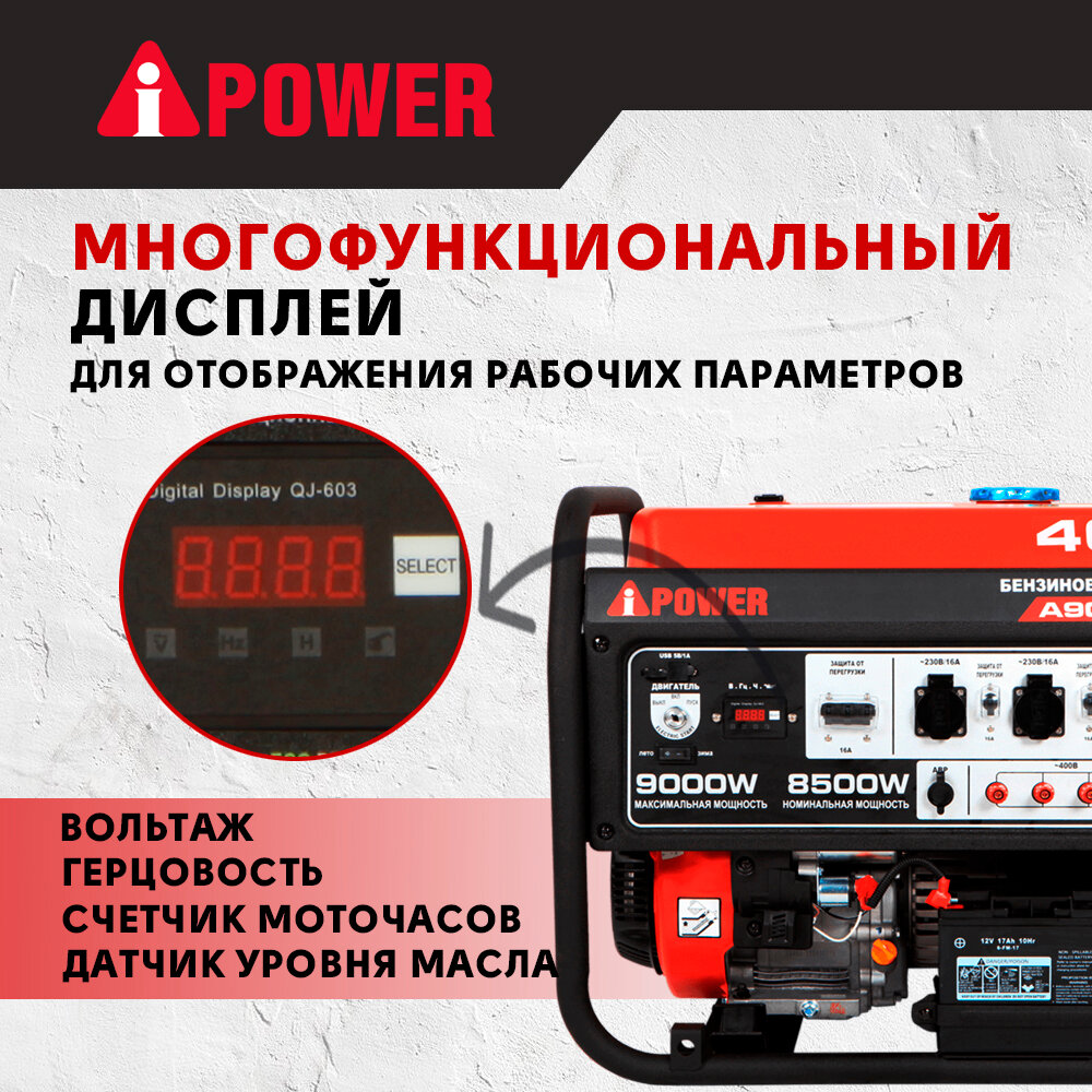 Генератор бензиновый инверторный A- IPOWER A8000IS 8кВт, 105кг бензогенератор с ручным и электро запуском двигателя, электростанция