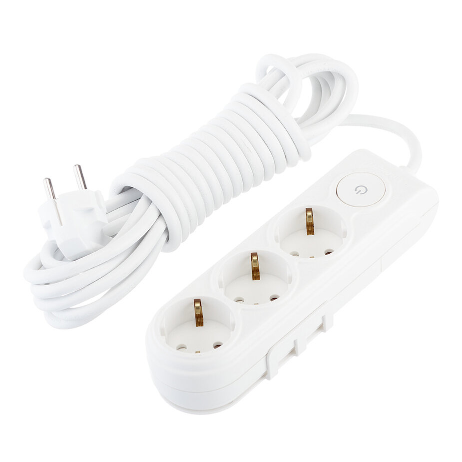 Удлинитель Makel 3 розетки 5 м ПВС 3х1 мм2 16 А 2,2 кВт с кнопкой белый (N3310063)