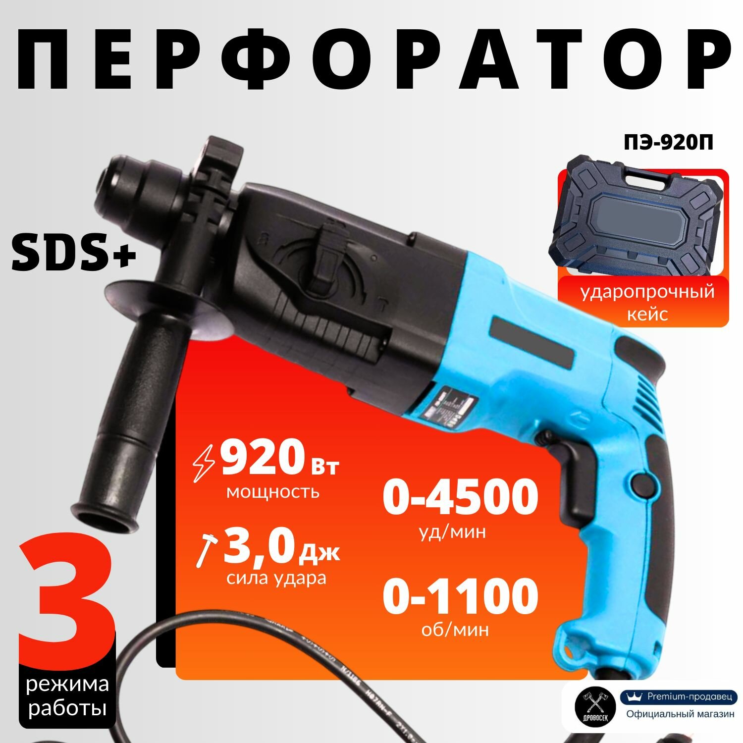 Перфоратор Варяг ПЭ-920П электрический, 920Вт, 3Дж, 3 режима, расширенная комплектация, от сети, подарок мужчине информация: